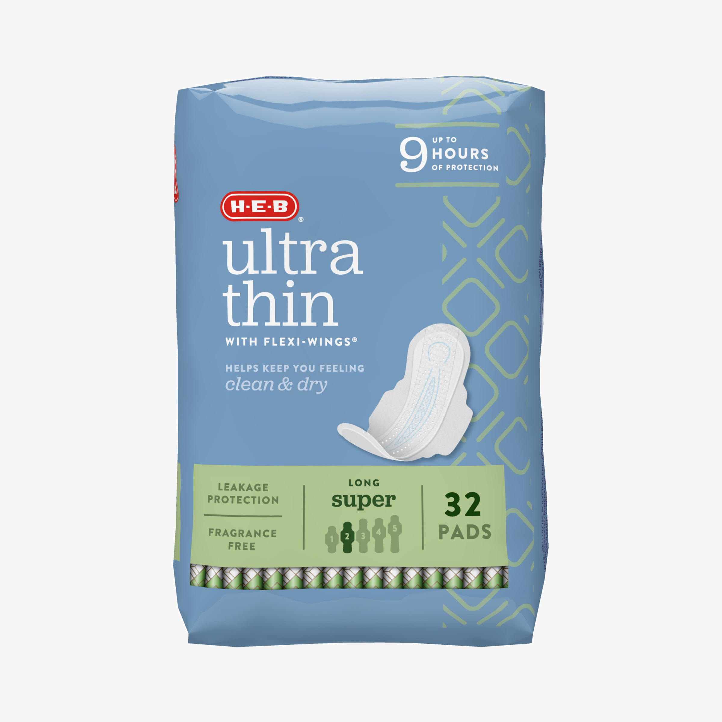 H-E-B Ultra Thin Flexi-Wings Pads - Overnight, Unscented, 16 ct