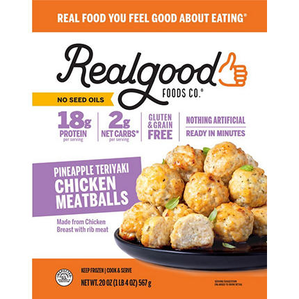 $1 off Realgood Foods Chicken Meatballs, 20 oz., assorted varieties