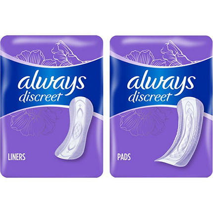 Save $2.50 TWO Always Discreet Liners (44ct, 48ct) OR Always Discreet Pad (20ct, 30ct).