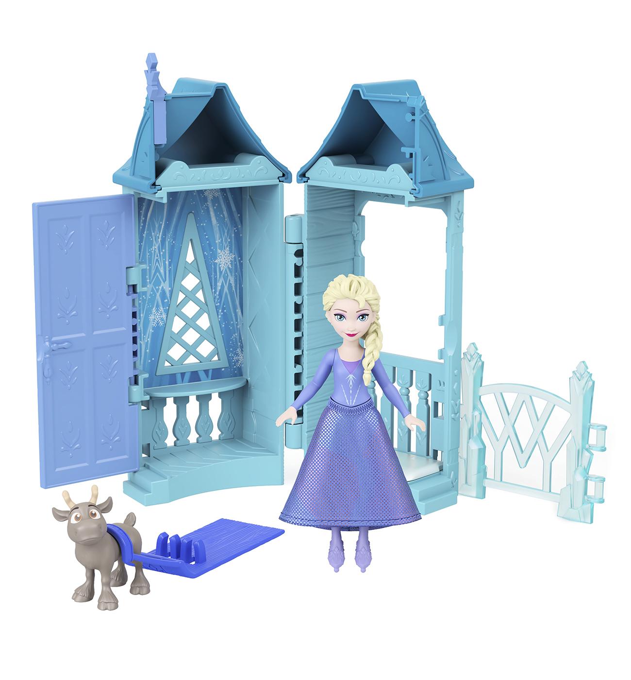 This blind assortment features an innovative unboxing experience with Squishy Ice—an icy blue, jelly-like compound. Kids use the included scooper to dig through the container of Squishy Ice and discover the treasures inside: a surprise Anna or Elsa small doll, a character friend and 4 play pieces.