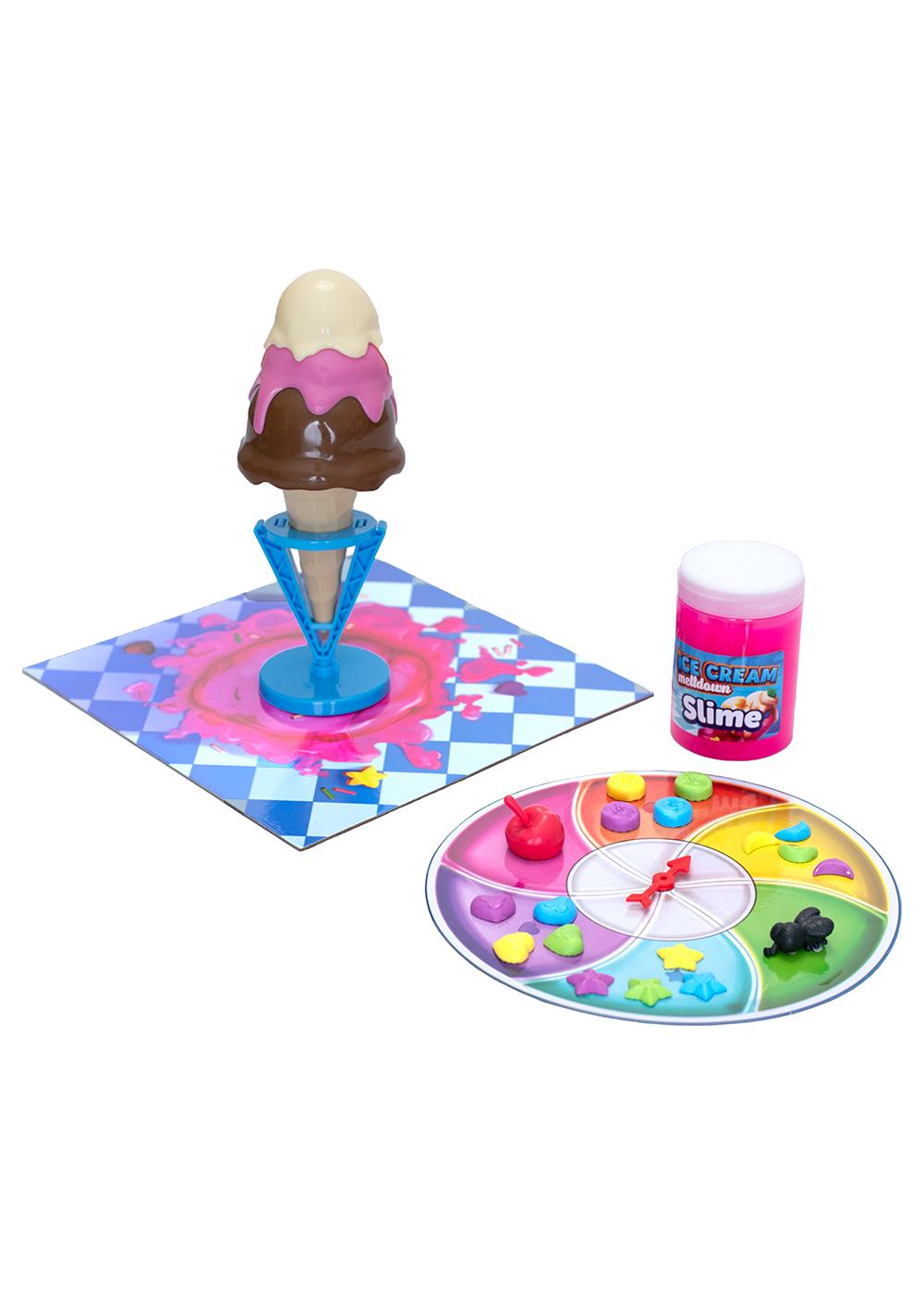 Here's the scoop! This ice cream cone is melting fast! The first player to place all their toppings in the ice cream slime and add the cherry wins! But watch out for that fly - yuck! When the ice cream starts to drip, you gotta be quick! Includes Gameboard to protect surfaces, 1 Spinner and Spinner Arrow, 18 Slime Charms, 1 Ice Cream Cone, 1 Cone Stand, 1 Ice Cream Slime in Resealable Container, and Complete Instructions. Recommended for 2-4 players, ages 4 and up.