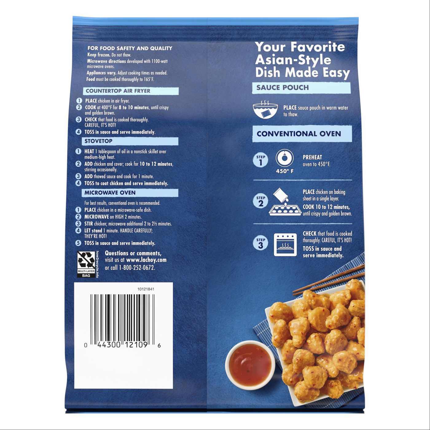 Enjoy your favorite Asian-inspired dishes in the comfort of your own home with La Choy Orange Chicken. Easily prepare tempura white meat chicken with a sweet & citrusy orange sauce pouch in the air fryer, oven or microwave or on the stove for a quick and convenient entrée for your family dinner meal. This La Choy frozen entrée has 12 grams of protein per serving, no artificial flavors and no MSG added* so you can indulge with confidence. Bring a little bit of Asian flavor into your kitchen with this delicious orange chicken for an easy meal the whole family is sure to love.