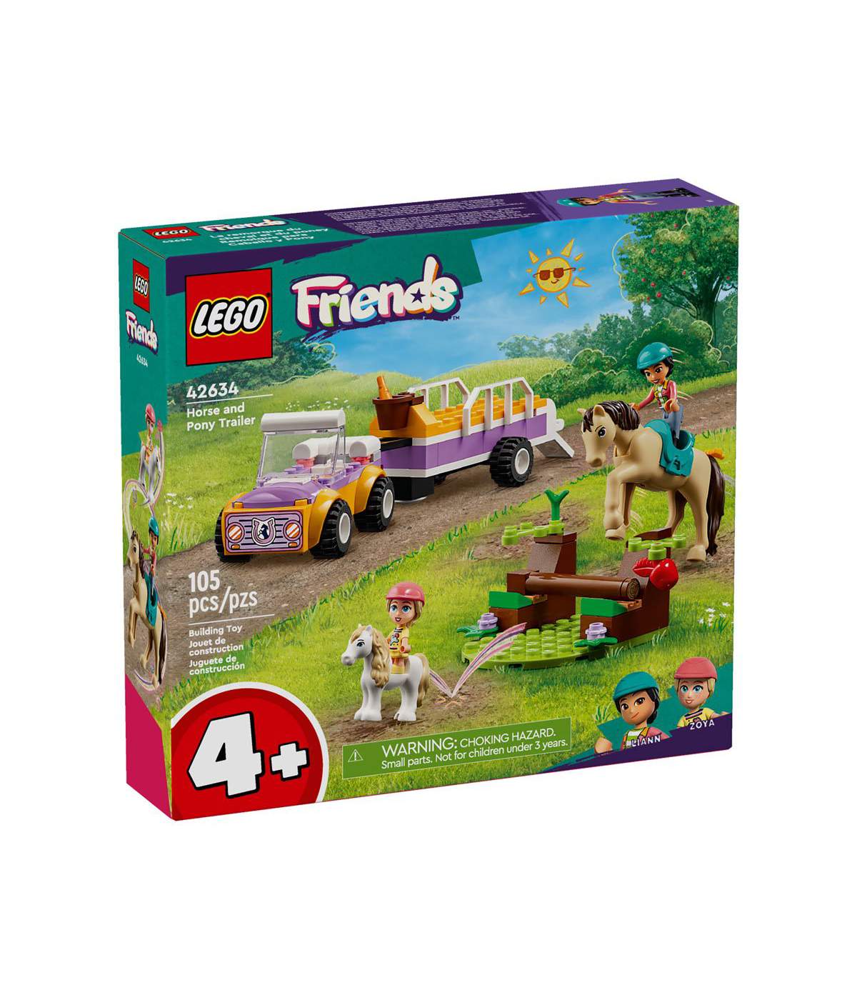 Kick off hours of creative play with this LEGO Friends Horse and Pony Trailer (42634) playset toy for girls, boys and kids aged 4 years old and up. Kids who love pretend play can build the car and trailer before creating adventures for friends Liann and Zoya.This animal-themed creative gift for kids comes with a horse for Liann and a pony for Zoya, plus toy accessories to inspire role-play ideas. Kids can help the characters brush the animals and get them ready for a ride. In the forest they find a fallen tree, which makes an obstacle for the horse and pony to jump over. After a fun day riding, the friends reward the horses with a tasty carrot.