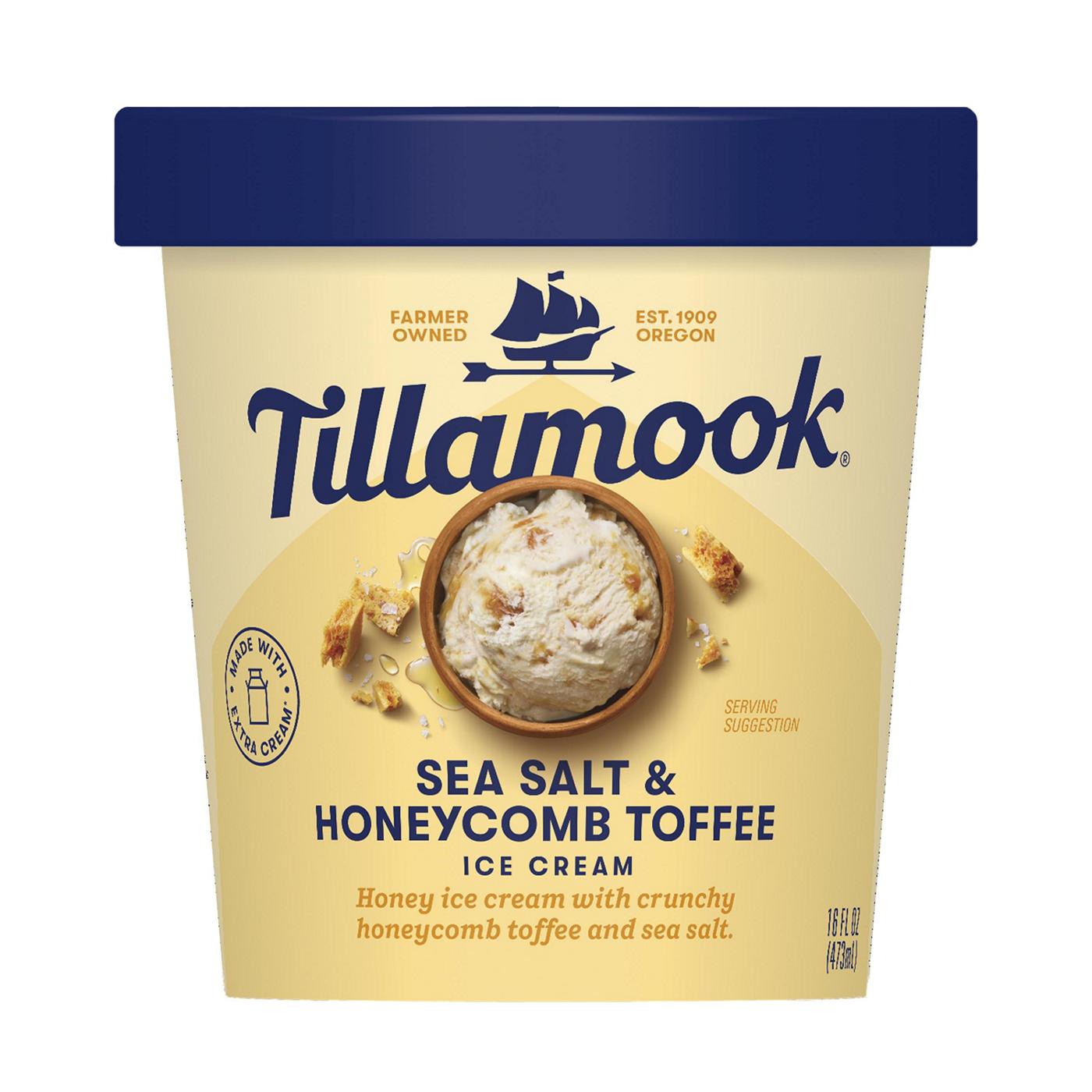 Treat yourself to creamy crunchy goodness with Tillamook Sea Salt & Honeycomb Toffee Ice Cream. Featuring sea salt, honey and toffee, this full-flavored ice cream pint is sure to satisfy your cravings for sweet and salty treats. Tillamook Sea Salt & Honeycomb Toffee Ice Cream is smooth and rich for delicious spoonfuls and is made with ingredients that perfectly match your expectations. Tillamook Pints are making ""me time"" a lot tastier and allow you to try even more of our tried and true flavors. Bring home your favorites and throw an ice cream party for one. Tillamook Ice Cream uses high-quality milk from cows not treated with rBST*, cage-free eggs and no artificial flavors. As a Certified B Corp, Tillamook is committed to being good stewards of cows and farms, of people and products, their communities and the environment. With quality dairy experience backing it since 1909, Tillamook Ice Cream has a taste to remember.