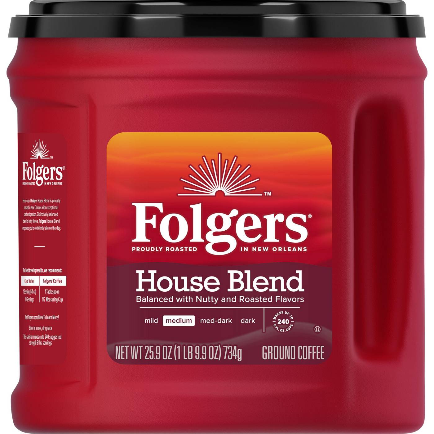 If you’re looking for a flavorful coffee roast that falls somewhere in between mild and intense, meet the happy medium that’s anything but middle-of-the-road. Folgers House Blend coffee is a medium roast coffee with an irresistible blend of nutty and roasted flavors. It’s not too light. Not too dark. And almost too good (if that were possible). Its fine-tuned flavor profile was carefully crafted by our expert Roast Masters, for a cup that’s full of character every time. Folgers House Blend ground coffee is delicious however you brew it, but it’s especially perfect for cold brewing or using a French press. Try it and see for yourself.