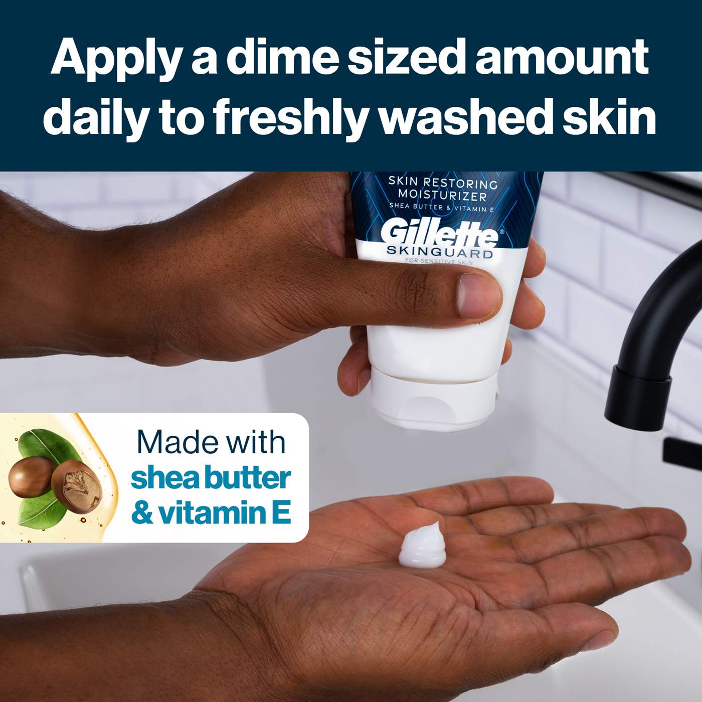 Gillette SkinGuard Face Moisturizer, part of Gillette's shaving regimen designed specifically for sensitive skin. SkinGuard revolutionizes the process of shaving by making shaving at home more enjoyable, including for men who are prone to skin sensitivity and irritation while shaving. As a complement to the SkinGuard razor and part of the SkinGuard regimen, the SkinGuard Moisturizer replenishes your skin's natural moisture barrier, leaving your skin feeling soft, smooth, and looking healthy. Our formula is made with shea butter and vitamin E, and it helps condition and moisturize your skin upon application without feeling greasy or sticky. Complimenting the rest of the SkinGuard shaving regimen, the Moisturizer is scented with a hint of crisp mint, fresh lavender, and warm wood. This specialized face moisturizer is clinically tested for sensitive skin. Simply apply a dime-size amount to freshly washed skin on your face and neck. Use it to finish your shave and restore moisture after your shaving routine and between shave days to expereince the full benefits. Experience the confidence that comes with "the best a man can get": a shave that's as easy as it should be--comfortable, smooth, and clean. To help prevent new razor bumps, ingrown hairs, and shaving irritation, use the Gillette SkinGuard regimen.