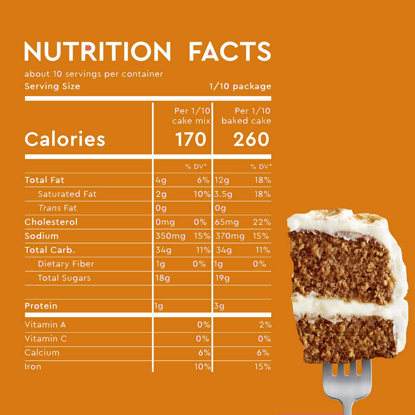 Make dessert time special with this simple and delicious Duncan Hines Signature Perfectly Moist Spice Cake Mix. Made with cinnamon, nutmeg and allspice, this spice cake mix treats your taste buds to rich flavor. Bake this layer cake for birthdays or fall celebrations and top with Duncan Hines Cream Cheese Frosting for the perfect dessert for any occasion. Add water, eggs and vegetable oil to this boxed cake mix. Bake up to 36 minutes based on your pan size. The 15.25 ounce box makes a standard Bundt cake, 24 cupcakes or a 13 by 9 inch sponge cake. From decadent brownie mix, to single serve desserts, Duncan Hines has you covered when you’re ready to bake and create.