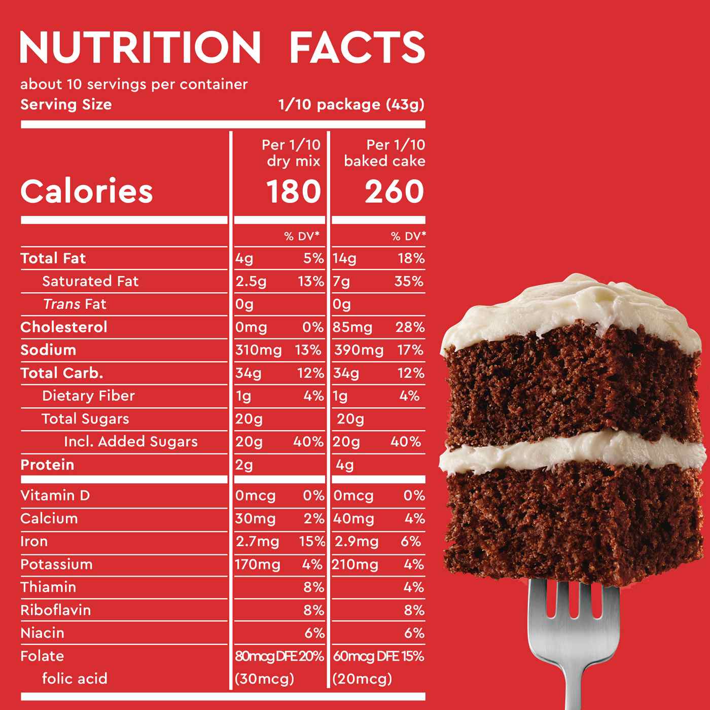 Serving Size0.10 baked cake- Amount Per ServingCalories270