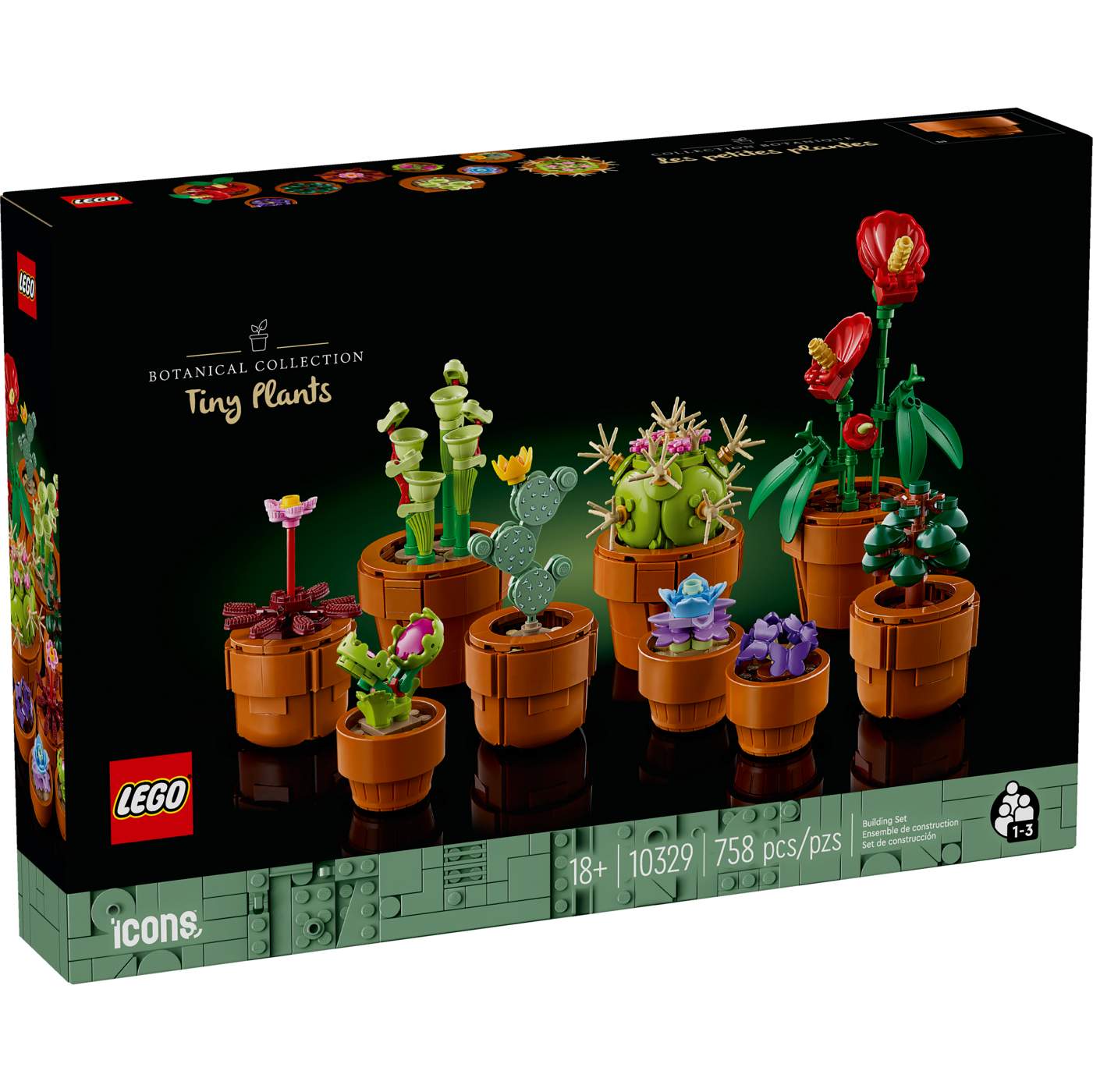 Create an elegant, zero-maintenance floral display with this home decor building set for adults. The LEGO Icons Tiny Plants (10329) building project features flora based on arid, tropical and carnivorous species, each nestled in a buildable, terracotta-colored container. Enjoy time out crafting each of the 9 plants before displaying them in your home or office. This set makes a great gift for plant-lovers and is the perfect project to enjoy with friends and family. Suitable for both new and advanced builders, it includes different models for easy, medium, and advanced levels of building complexity. The LEGO Builder app features a digital version of the building instructions included with this set.