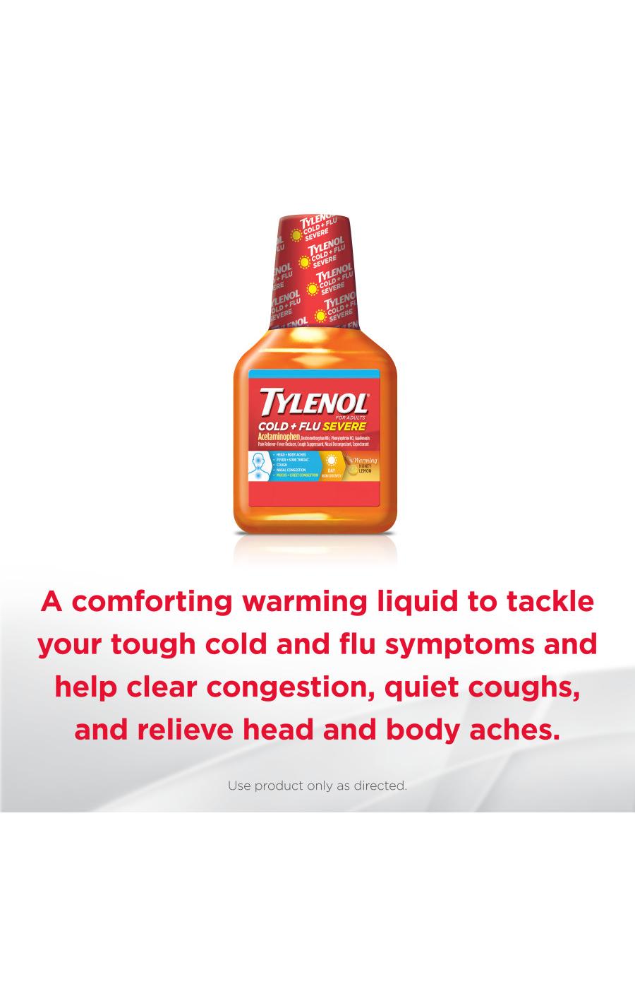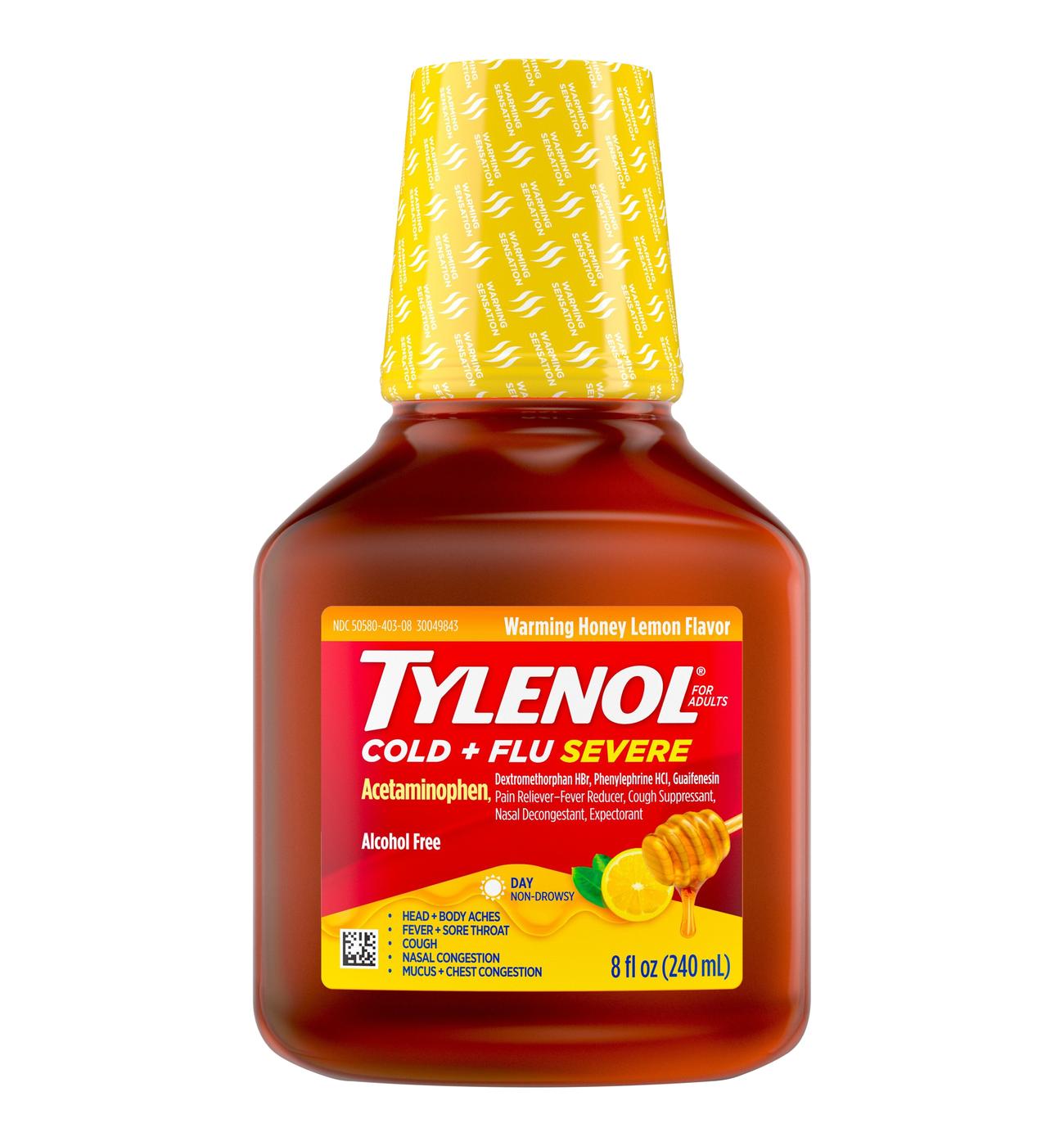 Daytime cold medicine with acetaminophen, dextromethorphan, guaifenesin & phenylephrine with a honey lemon flavor temporarily relieves cold & flu symptoms, reduces fever & relieves minor aches.- Severe daytime liquid cold & flu medicine- Reduce fever & relieve pain & congestion- Warming sensation with honey lemon flavor