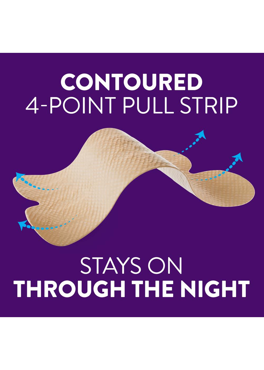 ZzzQuil Sleep Nasal Strips instantly open your nose for all-night easier breathing! These tan nasal strips feature 4-point pull design which opens your nose, so you can breathe and sleep better. They can also reduce snoring by improving breathing. These ZzzQuil Sleep Nasal Strips have gentle adhesion with maximum staying power, so they can stay on through the night. These nighttime nasal strips also have a comfortable fit that stays on all night. They are drug-free, unscented, and non-habit forming for nightly use. They are easy to apply and have easy, irritation-free removal as well. ZzzQuil brings you Sleep Nasal Strips, so you can breathe better, sleep better, and wake up refreshed.