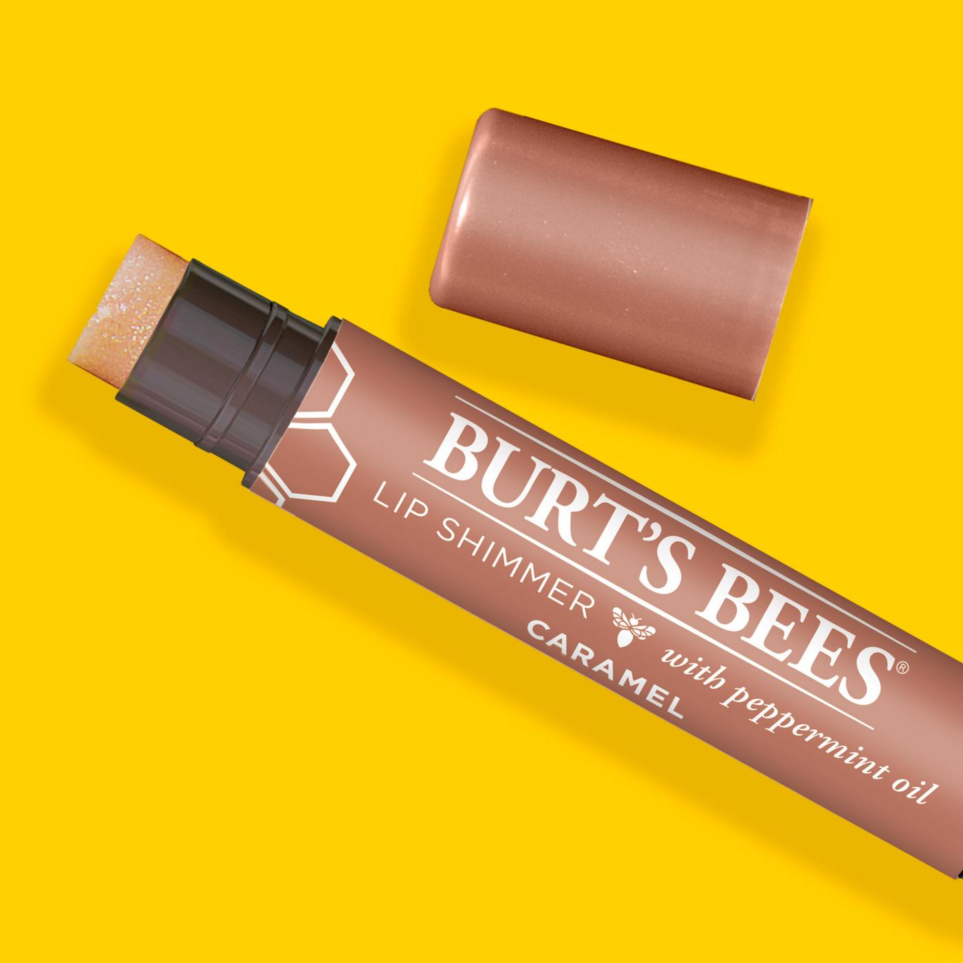 Burt's Bees Lip Shimmer Caramel provides warm, luminescent color; high impact, instant moisture; and refreshing peppermint flavor.• SHIMMER AND SHINE: Burt's Bees Lip Shimmer Caramel provides the perfect hint of luminescent color for shimmering, vibrant lips in a warm shade (Packaging May Vary)• HIGH IMPACT, INSTANT LIP MOISTURE: Burt's Bees Lip Shimmer Caramel nourishes lips with shea and cocoa butters to deliver instant moisture and leave them feeling softer• SOFT, WARM CARAMEL COLOR: The luminescent shade of Burt's Bees Lip Shimmer Caramel adds shine and enriches lip color with a flattering, tawny beige hue• REFRESHING PEPPERMINT: Made with peppermint oil, Lip Shimmer Caramel provides a delightful hint of refreshing peppermint flavor with every delicious swipe• NATURAL ORIGIN: Made without parabens, phthalates, petrolatum, or SLS, Lip Shimmer Caramel is 100% natural origin, formulated with ingredients from nature and comes in a recyclable carton