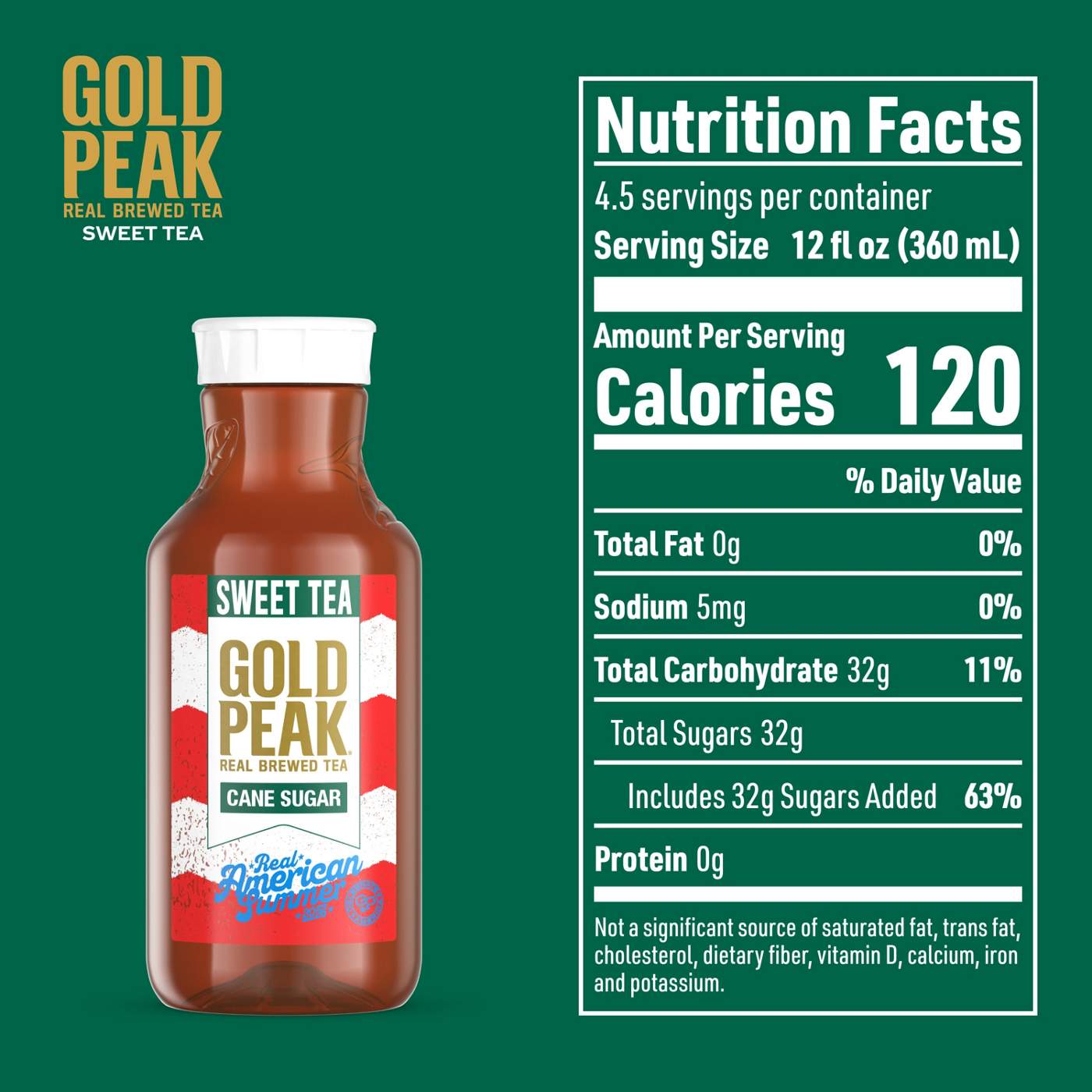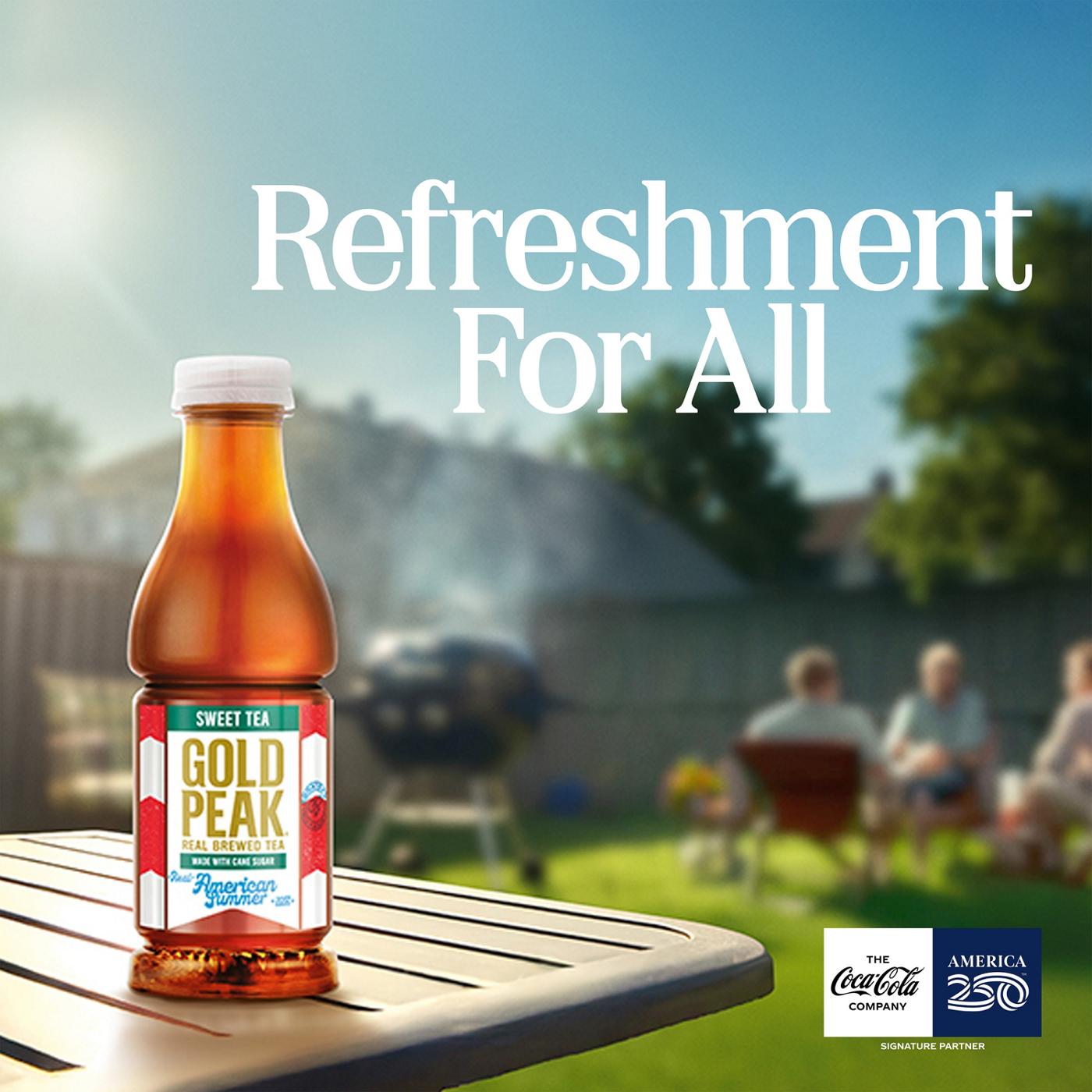 Gold Peak Sweet Tea brings the comforting taste of real-brewed tea, made from high-quality tea leaves picked for peak taste. Sweetened with real cane sugar, this tea tastes so good you'll think it was homemade. Each bottle provides a bold splash of sweet black tea, bringing the taste of summer no matter the season.