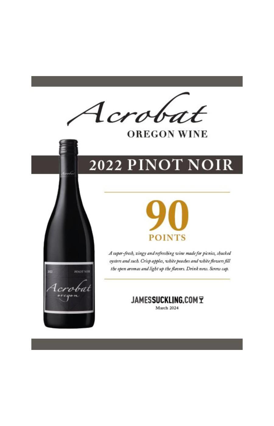 Acrobat is life in balance. Acrobat is style and grace. Acrobat is wine born to introduce people to the drinkability and deliciousness of Pinot Noir. Responsibly grown in the breathtaking hills and valleys of Western Oregon, this wine is excellent with food and equally enjoyable on its own.