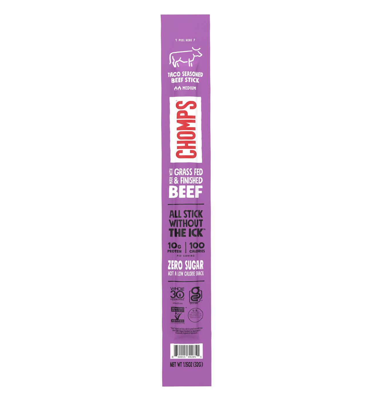 Chomps 10g Protein Taco Seasoned Beef Jerky Meat Stick