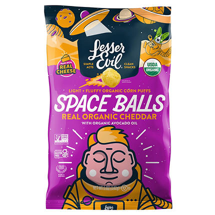 LesserEvil Space Balls Organic Cheddar Corn Puffs