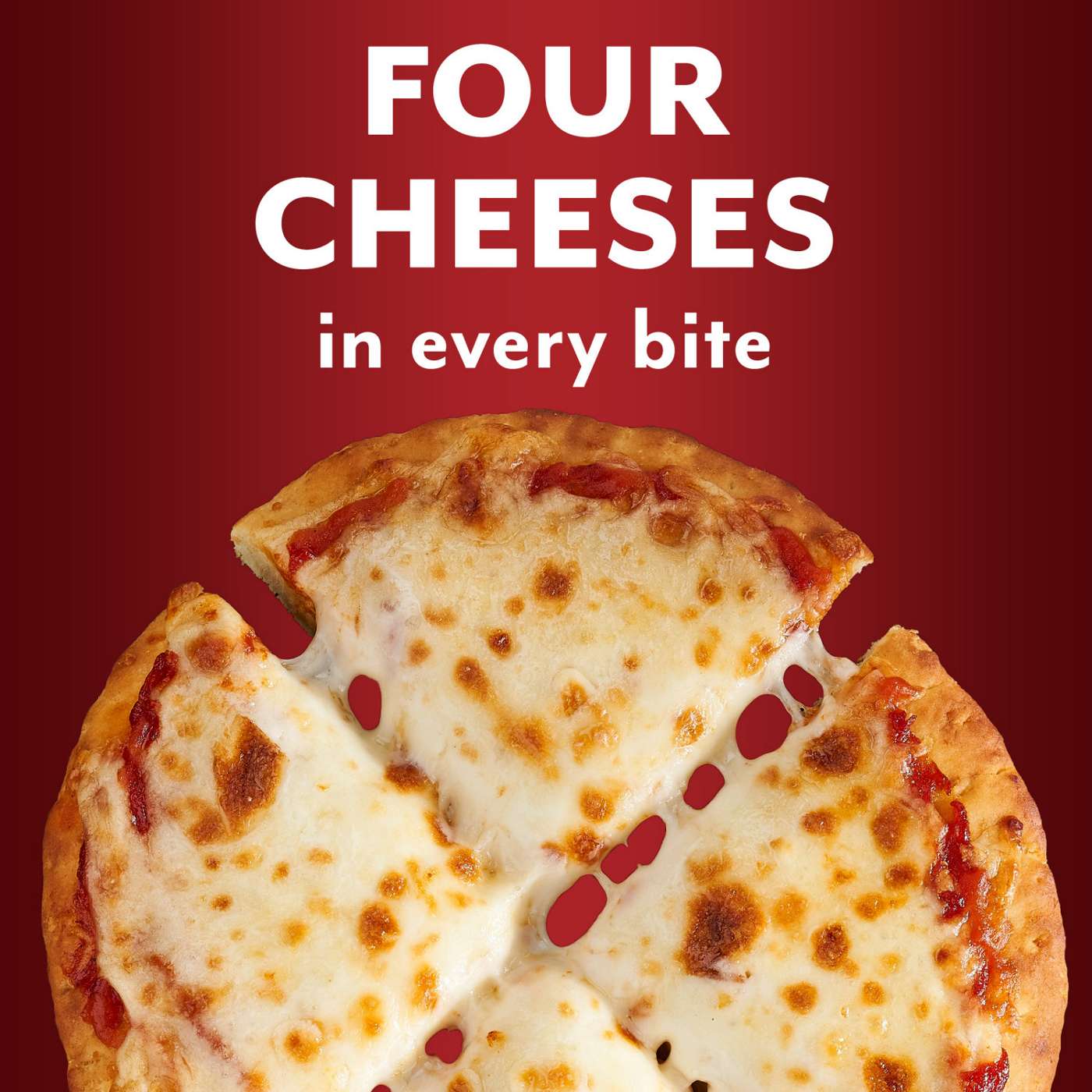 • One 8.5 oz DiGiorno Frozen Four Cheese Personal Pizza on a Stuffed Crust• DiGiorno stuffed crust pizza bakes up golden brown on the outside with mouthwatering, melty cheese in the crust• Real mozzarella, Parmesan, Asiago and Romano cheese on a stuffed pizza crust with signature tomato sauce• DiGiorno cheese frozen pizza is made with 100% real cheese• Enjoy DiGiorno pizza with a fresh salad• Keep this DiGiorno frozen pizza in the freezer until you're ready to enjoy• It's not delivery. It's DiGiorno.