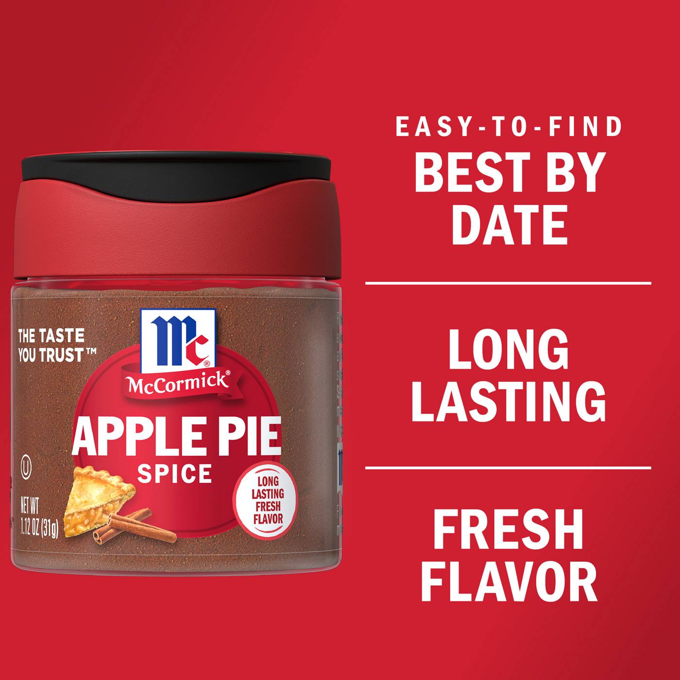 Cozy up to McCormick® Apple Pie Spice, a balanced blend of cinnamon, nutmeg and allspice. Naturally it's perfect for apple pie- as well as oatmeal, French toast, sweet potatoes, fruit salad and mulled cider. Aromatic and gentle, yet bursting with flavor, this spice blend is all you need for delectable apple desserts like pies, tarts, crisps, baked apples and homemade applesauce. Great for holiday baking when you want the taste of warm, delicately sweet spices- think spice cakes, quick breads, gingerbread cookies and glazed nuts. Mix things up and substitute this blend for cinnamon in your baked goods. Apple pie spice is for more than just desserts- try at breakfast time in pancakes, waffles, muffins, granola and hot coffee or cocoa.- McCormick Apple Pie Spice is a balanced blend of cinnamon, nutmeg & allspice- Bursting with the flavor of warm, delicately sweet spices- For apple desserts like pies, tarts, crisps, baked apples & homemade applesauce- Use 1 1/2 tsp. Apple Pie Spice to 6 medium apples for pie- Substitute this blend for cinnamon in your baked goods and holiday desserts- Great spice blend for festive Thanksgiving and Christmas meals- SnapTight™ bottles keep flavor and aroma sealed in- Non GMO
