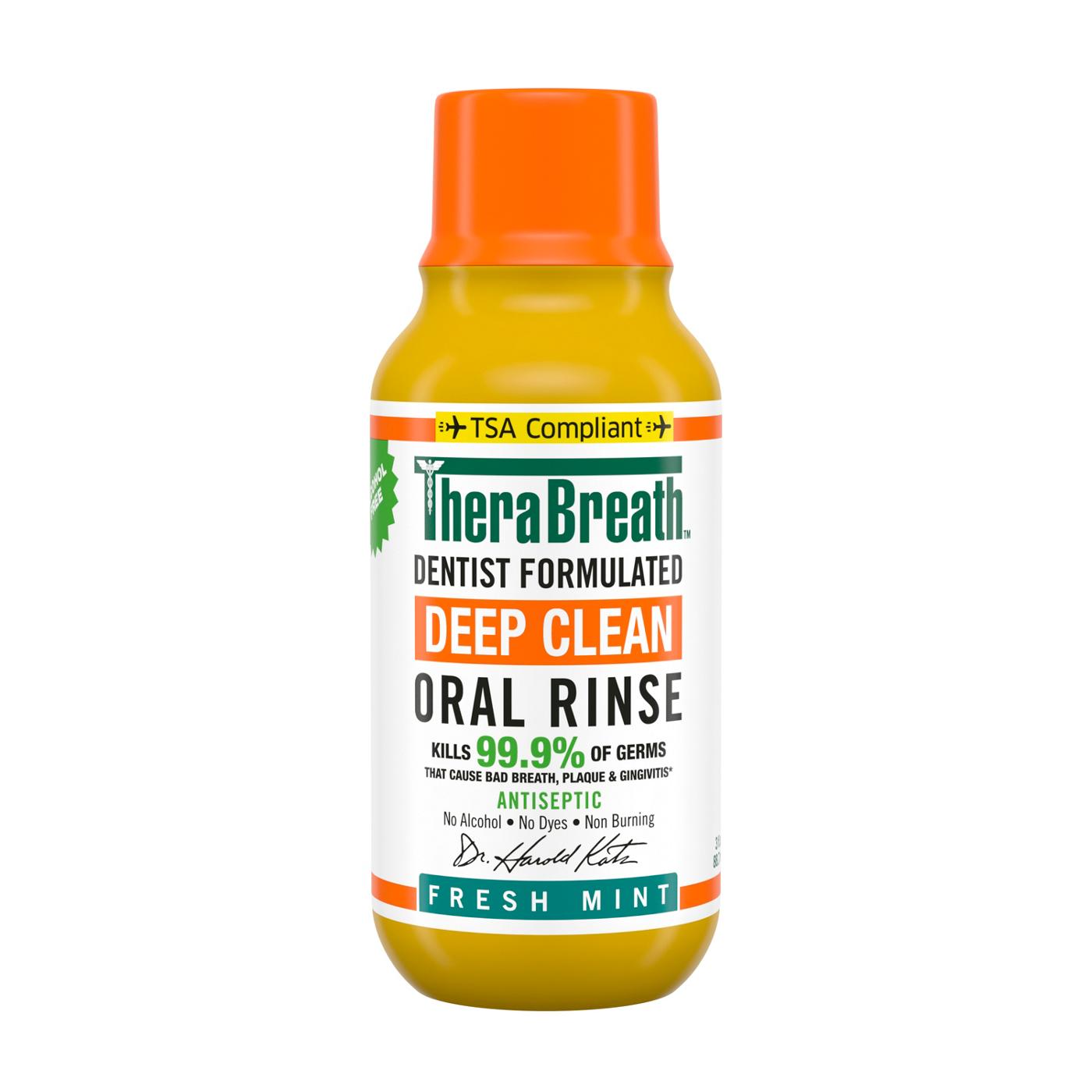 A clean mouth is a healthy mouth. That's why our team created Therabreath deep clean oral rinse for those who seek a powerful bacteria-killing clean. THis rinse is formulated with ingredients demonstrated to kill germs in your mouth that cause bad breath, plaque, and gingivitis. And like all Therabreath Oral Rinses, Deep clean is formulated with no alcohol, dyes, or burning. A deep clean and fresh breath-- the best of both worlds.