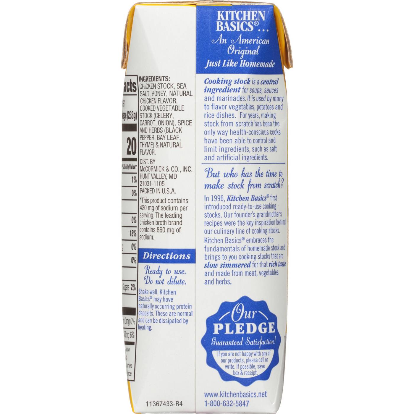 Enjoy the robust flavor of Kitchen Basics Original Chicken Stock. A slow simmer of chicken, veggies and McCormick herbs, this gluten-free stock has less sodium than other broths and no artificial flavors or MSG.