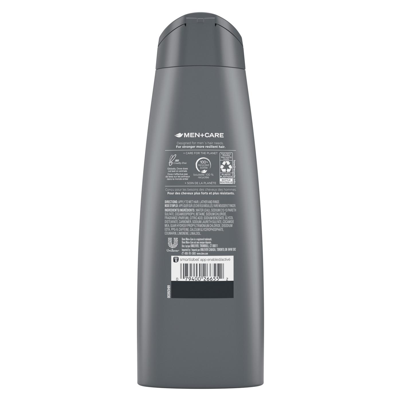 Dove Men + Care Fortifying 2 in 1 Shampoo and Conditioner helps make hair stronger and more resilient so that men can pursue their active lifestyles. This shampoo and conditioner for thicker hair is designed specifically for men that want visibly thicker and fuller hair - and comes in a convenient 2-in-1 formula that cuts down on time spent in the shower. With a powerful dual combination of caffeine and calcium, this shampoo conditioner helps strengthen hair leaving it visibly healthy, thicker and more resilient. The smart 2-in-1 formula functions as a shampoo and conditioner so that it cleanses and conditions hair simultaneously. This shampoo for thicker hair is a great choice for men with active lifestyles, whose everyday activities can weaken hair, making it more prone to hair fall from breakage. Great hair doesn't stop in the shower! Complete your hair care regimen and get the perfect look with the Dove Men + Care Sculpting Paste for a natural look, Defining Pomade for a sleek and polished finish, or Control Gel for all-day hold. Use it with the entire line of Dove Men + Care products for the perfect grooming regimen, such as Dove Men + Care Clean Defense Body Wash, Dove Men + Care Dry Spray Antiperspirant, and Dove Men + Care Clinical Protection Stick.