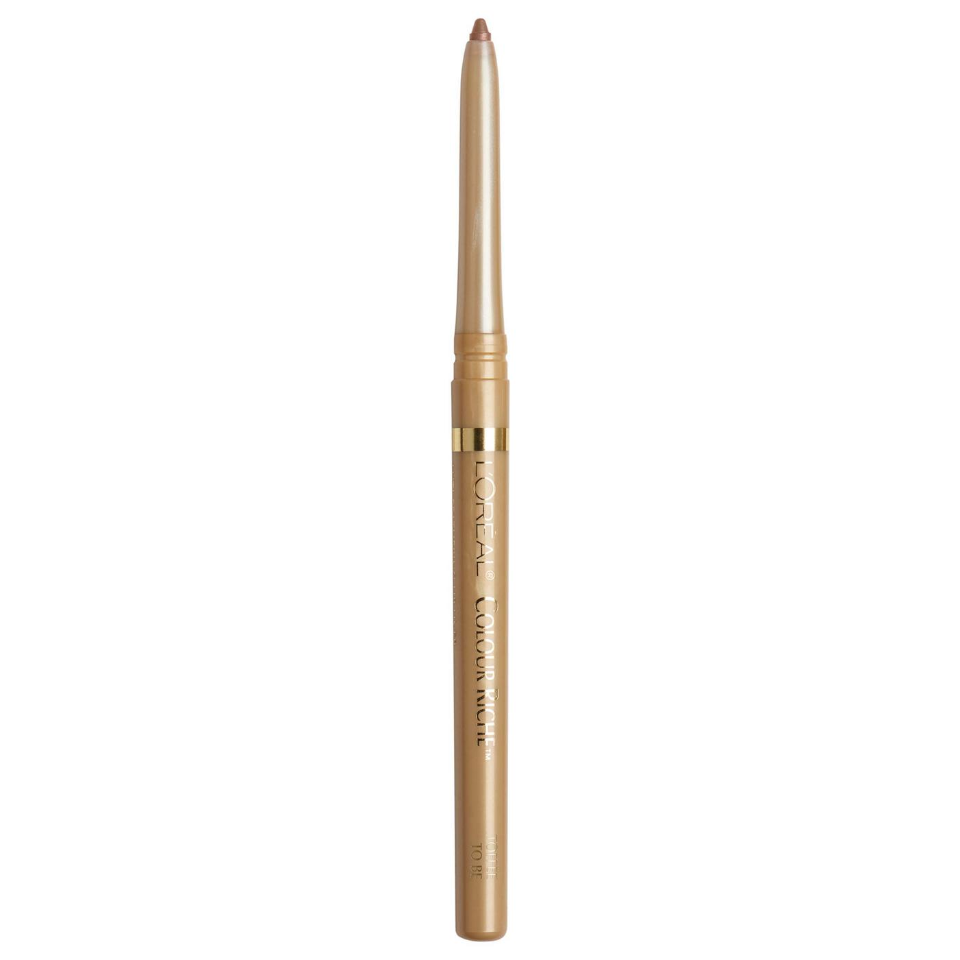 Create a flawless lip look with the L'Oréal Paris Colour Riche Lip Liner in Toffee To Be. This retractable pencil glides on smoothly for easy and precise application. The Toffee To Be shade is a versatile brownish-nude color with a smooth, creamy-looking texture.• Retractable tip ensures precision without sharpening• Creamy texture provides a smooth, tug-free application• Defines lips to prevent feathering and extend lipstick wear