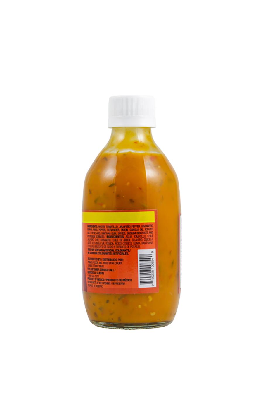 A delicious combination of habanero and red peppers give this salsa a very singular flavor, perfect for those who know and enjoy habanero pepper's hot and rich flavor. Ideal for carne asada, sea food (mariscos), taco and more.