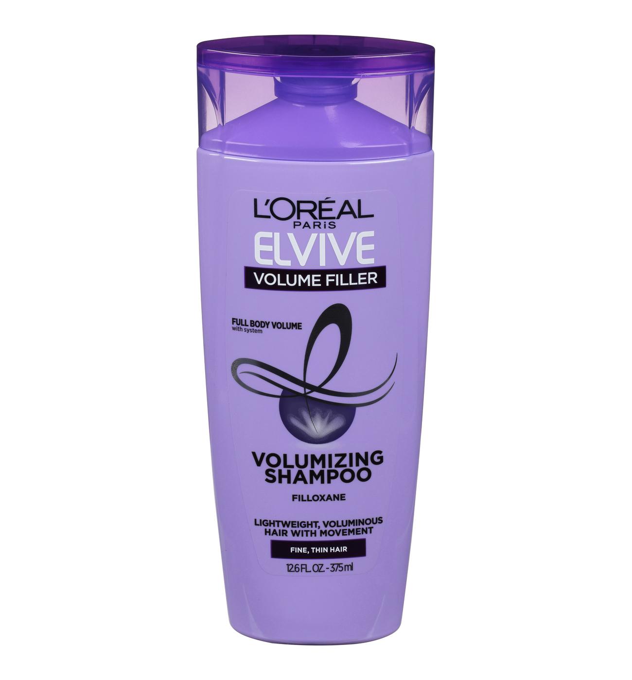Experience thicker-feeling, more voluminous hair with the L'Oréal Paris Elvive Volume Filler Thickening Shampoo. Its formula is specifically designed to address a lack of volume in fine or thin hair types. With each wash, it works to make your hair feel fuller and more substantial.• Thickening shampoo for fine or thin hair• Formulated to create a fuller, more voluminous look• Works to improve hair's texture and body• Leaves hair feeling thicker wash after wash