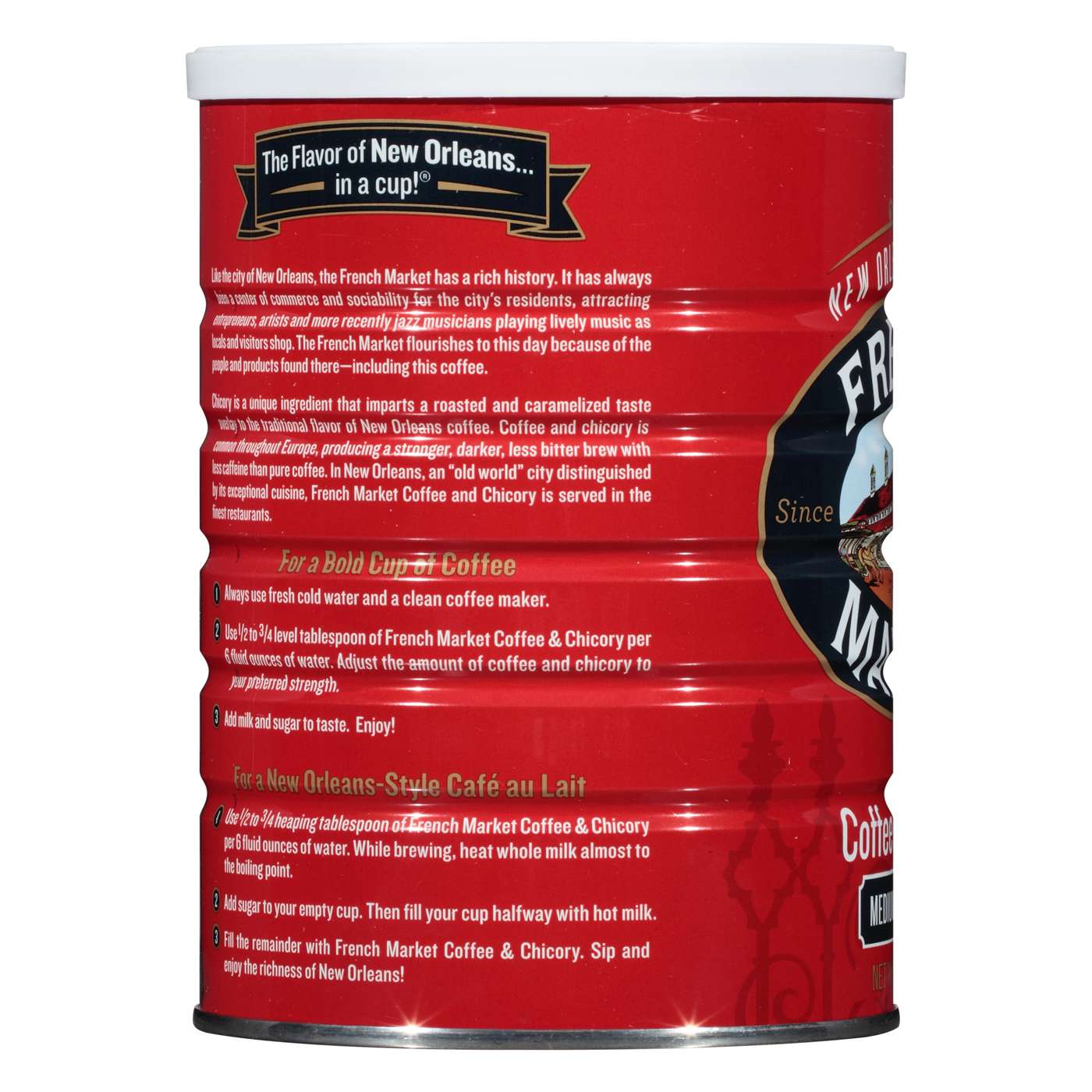 The French Market flourishes to this day because of the people and products found here - including this coffee. Chicory is a unique ingredient that imparts a roasted and caramelized taste overlay to the traditional flavor of New Orleans coffee. Coffee and chicory is common throughout Europe, producing a stronger, darker, less bitter brew with less caffeine than pure coffee. In New Orleans, an old world city distinguished by its exceptional cuisine, French Market Coffee and Chicory is served in the finest restaurants.