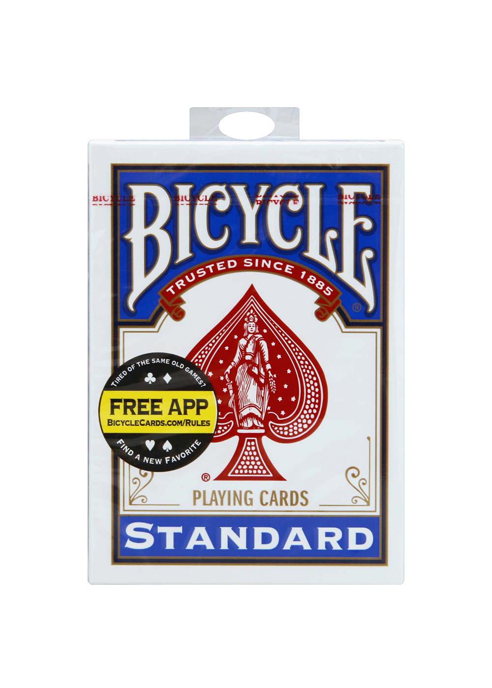 Standard size, standard face. Trusted since 1885. Every time you open a fresh deck of Bicycle you are handling 120 years of playing card expertise. We proudly craft each deck using custom paper and coatings, so you can trust Bicycle performance hand after hand. Air-cushion finish.