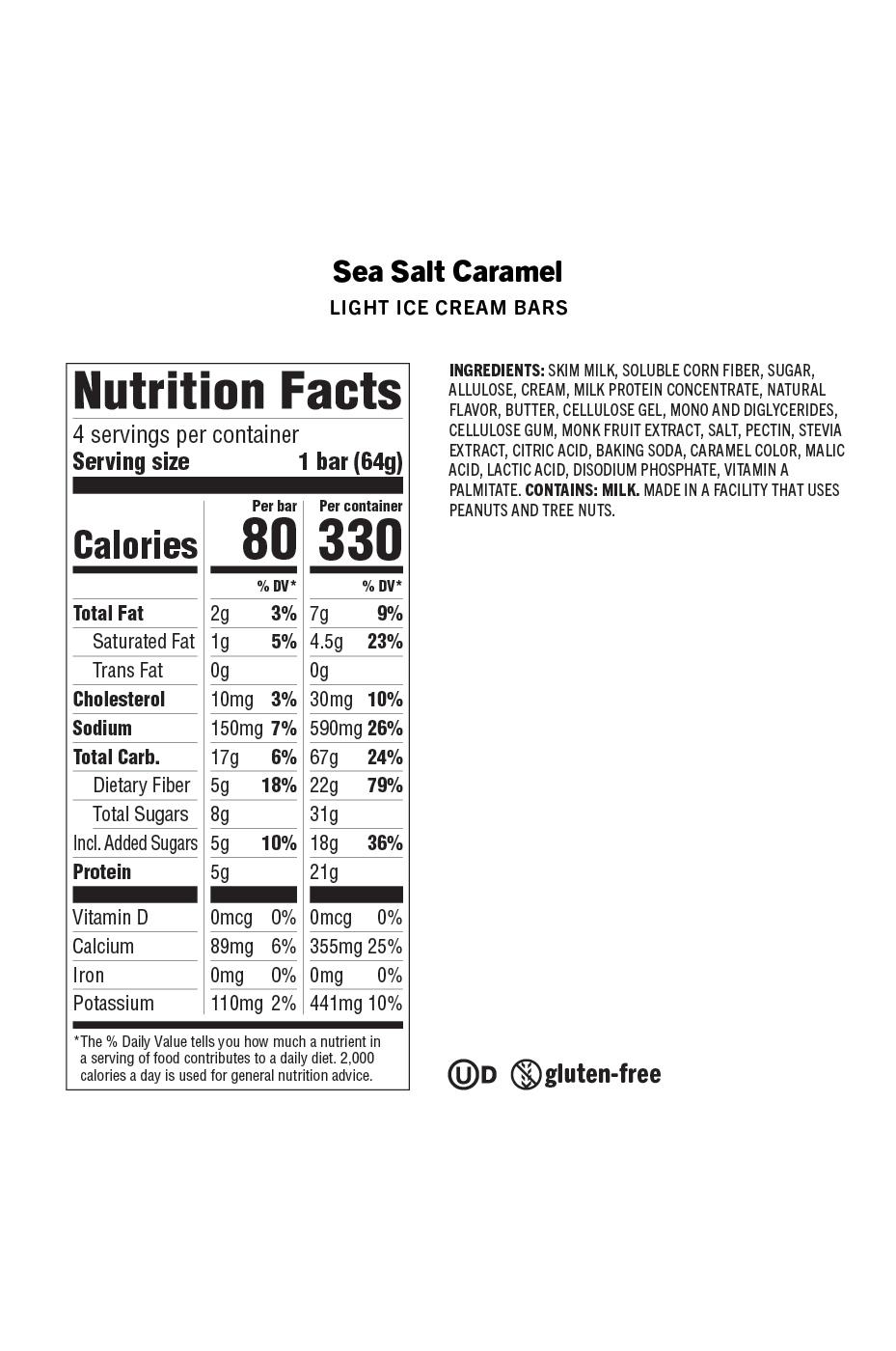 Skim Milk, Soluble Corn Fiber, Sugar, Allulose, Cream, Milk Protein Concentrate, Natural Flavor, Butter, Cellulose Gel, Mono and Diglycerides, Cellulose Gum, Monk Fruit Extract, Salt, Pectin, Stevia Leaf Extract, Citric Acid, Baking Soda, Caramel Color, Malic Acid, Lactic Acid, Disodium Phosphate, Vitamin A Palmitate.Allergens and safety warnings
