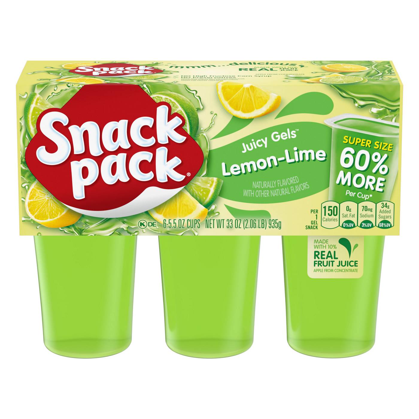 Snack Pack Lemon Lime Naturally Flavored Super Size Juicy Gels are a fun snack or dessert that is delicious any time of the day. This gel snack features classic lemon and lime flavor for an explosion of fruity flavor. Snack Pack Lemon Lime Juicy Gels are so full of flavor, they won’t make you miss the lemon lime gelatin cups you’ve had before. Not only are these sweet snacks delicious and convenient, but they are gluten free and contain no high fructose corn syrup. Each of these gel cups have 60% more gel per 5.5 ounce cup than regular-sized Snack Pack gel cups. Snack Pack Juicy Gels cups are perfect for packing in a lunch so you can cap off your meal with a delicious sweet treat. These snack cups also make an easy after-dinner treat or dessert for the entire family. If you want to add some extra excitement to these gels cups, try using them for exciting recipes. Add whipped cream and sprinkles to make fun desserts. Each Snack Pack snack cup is a convenient size and does not need to be refrigerated, making this a reliable treat that is easy to enjoy anytime and easy to pack up and take with you anywhere. Your inner child is calling, and it’s craving Snack Pack.