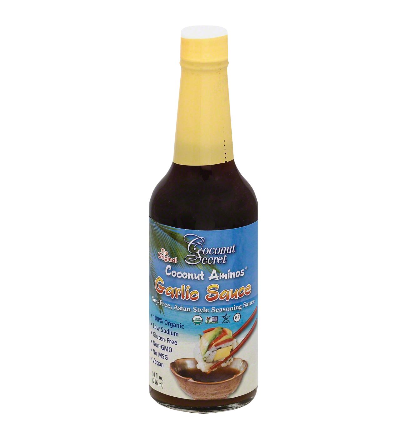 Coconut Secret Coconut Aminos Garlic Sauce is soy-free, gluten-free and organic.