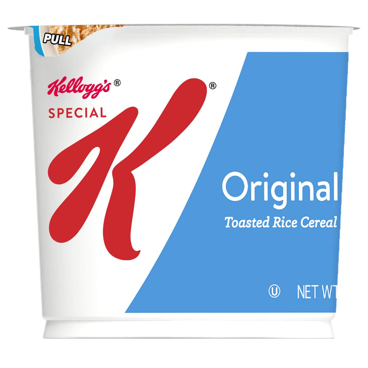 Start your day off right with the simple goodness of Special K Cereal Original - a deliciously crafted, wholesome cereal that loves you back with each healthy spoonful. This filling cereal is made with light, crispy rice flakes that are perfectly toasted and lightly sweetened to energize you for the day ahead. Just as nutritious as it is delicious, this breakfast cereal contains essential vitamins and minerals to help keep you going strong. Each portable cereal cup lets you take a deliciously satisfying meal or snack with you wherever you go. Whether you enjoy your cereal at home, work, school or the gym, you'll love that there's no mess or dish to clean up. Go ahead–pop the top, pour over your favorite milk, and enjoy Kellogg's Special K Original cereal that lets you feed your strength with each irresistible bite.