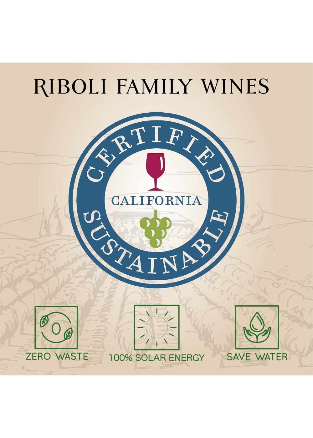 • 100% certified sustainable; Riboli Family Wines are sustainable from ground to glass
