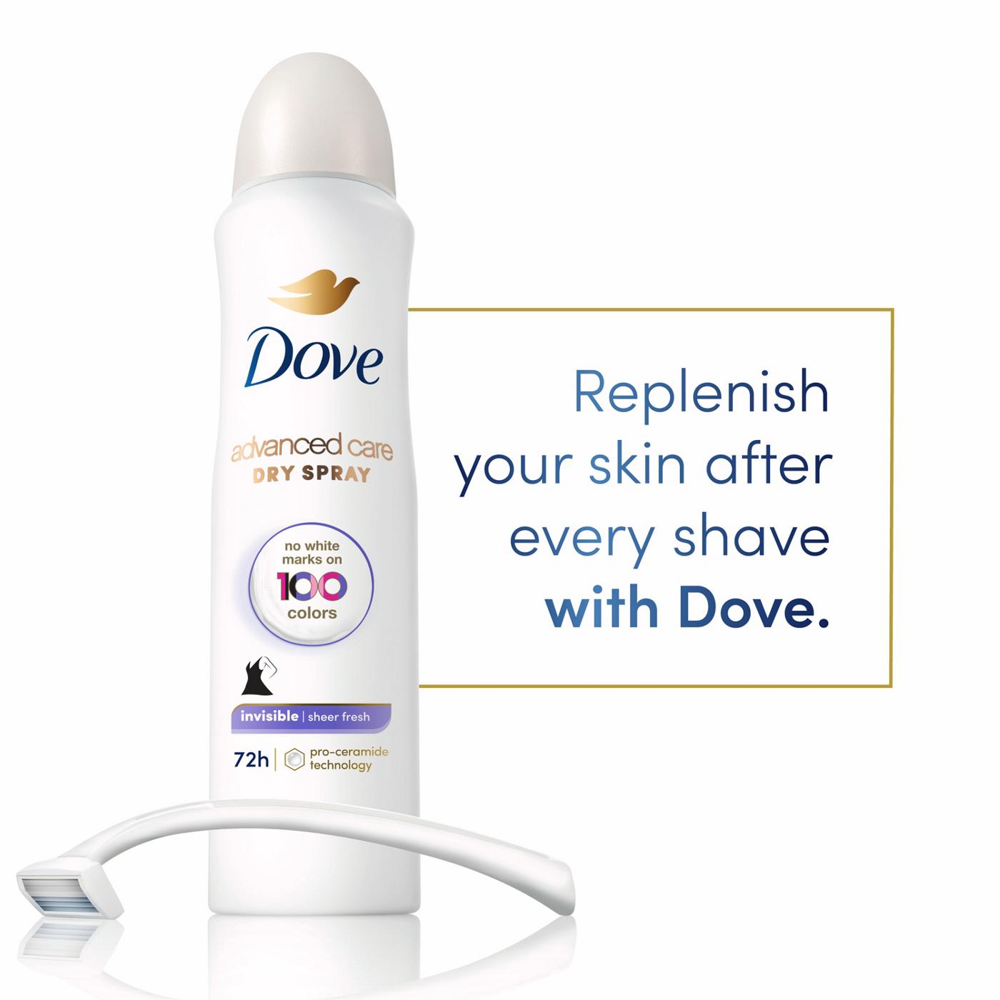 • NO MARKS ON 100 COLORS: Dove Advanced Care Invisible Sheer Fresh Dry Spray Antiperspirant Deodorant is proven to leave no white marks on 100 colors of clothing