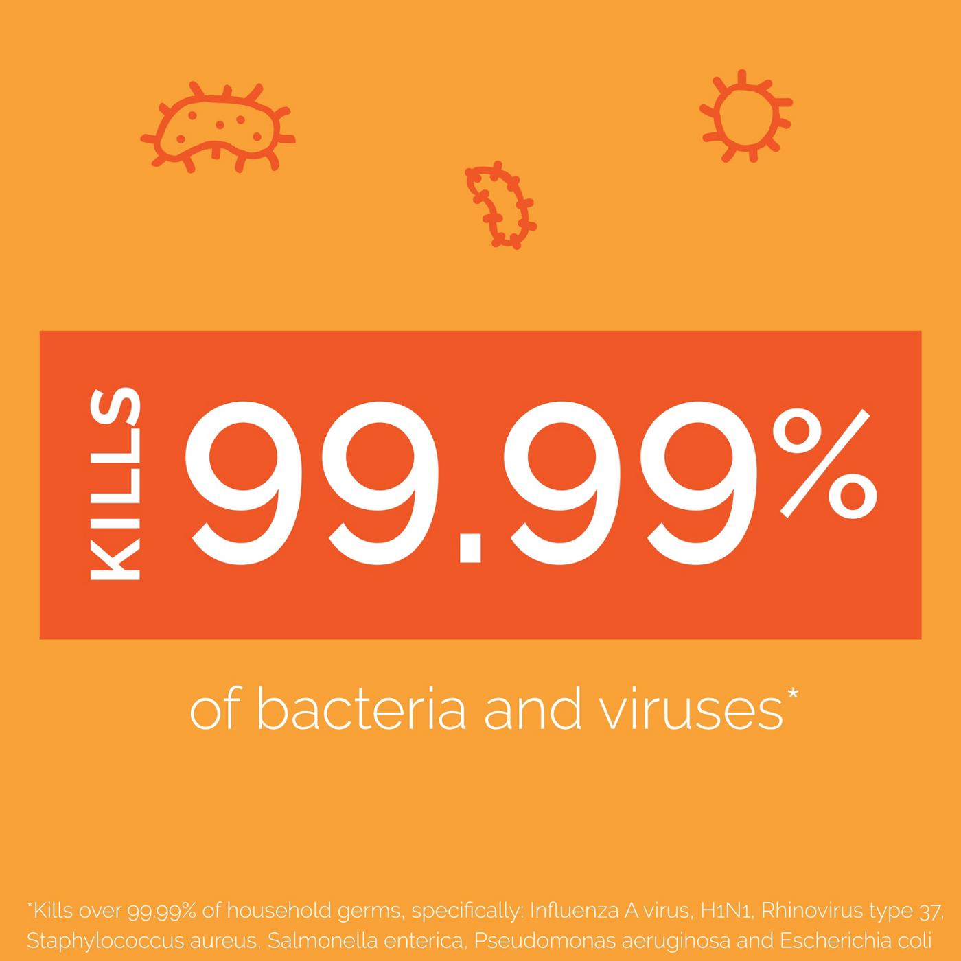 *Kills over 99.99% of household germs, specifically: Influenza A virus, H1N1, Rhinovirus type 37, Staphylococcus aureus, Salmonella enterica, Pseudomonas aeruginosa and Escherichia coli.