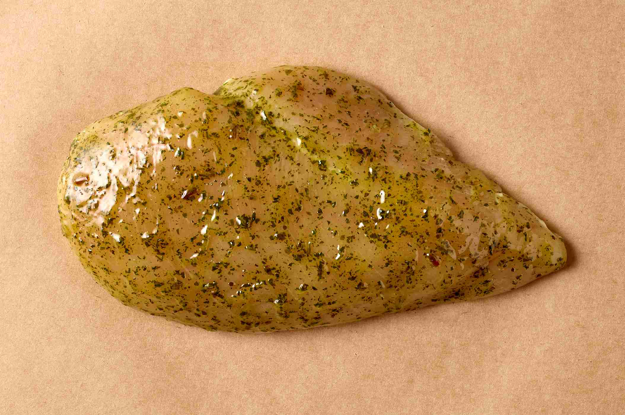 Marinated in wild garlic, herbs, onion and spices, our H-E-B Meat Market chicken breasts are conveniently ready to grill or oven roast. Freshly prepped, they're an easy dinner option that's on the table in about 30 minutes. Pick up some for a fuss-free meal tonight and serve with your favorite sides.