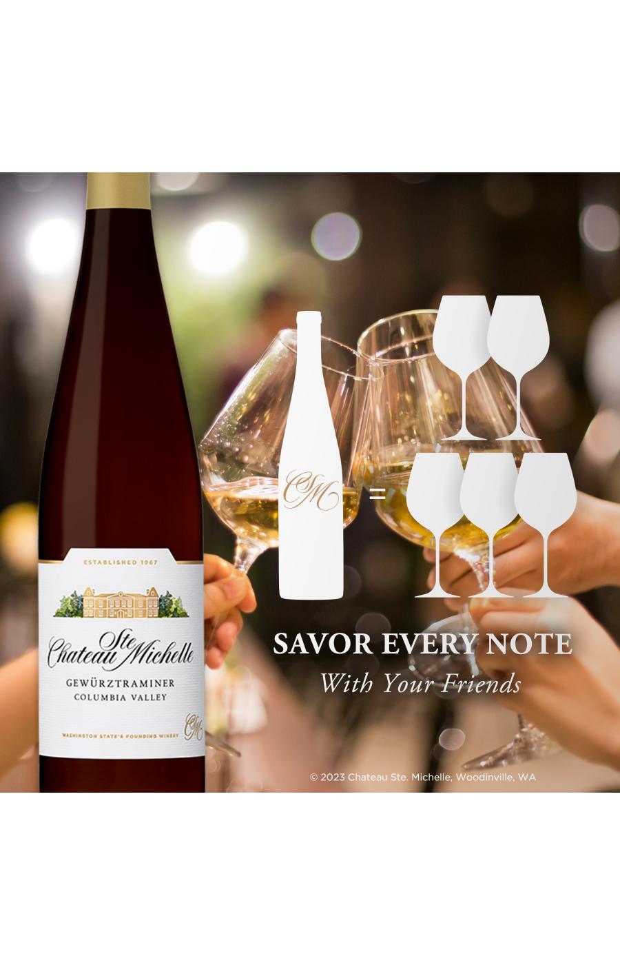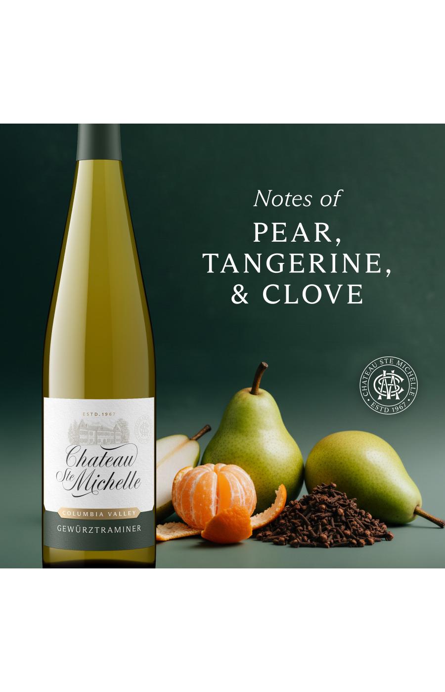 • Varietal: Gewurztraminer• Type: White Wine-All Other Varietals• Origin: United States• Tasting Notes: The perfect balance of sweetness and acidity shines through in Chateau Ste. Michelle Columbia Valley Gewurztraminer, a delightful light-bodied white wine with luscious stone fruit, floral notes, and a hint of clove.• Pairings:• Size: 750 mL• ABV: 12.00%