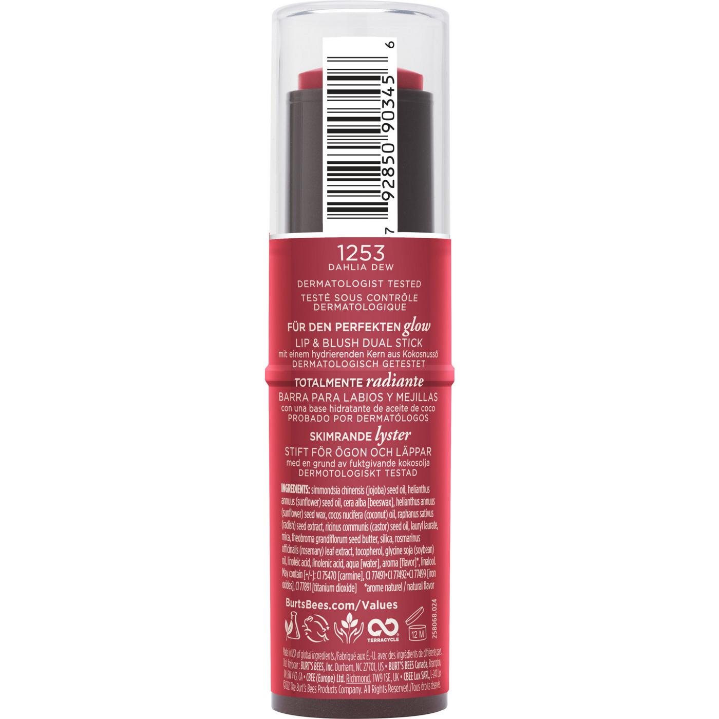 - NATURAL MAKEUP: This Burt's Bees cheek and lip stick is dermatologist-tested and naturally formulated without parabens, phthalates, SLS, petrolatum or synthetic fragrances. Never tested on animals