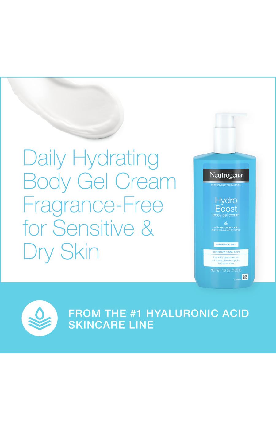 This fragrance-free body gel cream with hyaluronic acid boosts skin's hydration & locks it in for skin that's supple & hydrated. The body moisturizer is great for sensitive skin.- Body cream instantly quenches thirsty skin- Fragrance-free; for sensitive & dry skin- Skincare's super hydrator hyaluronic acid