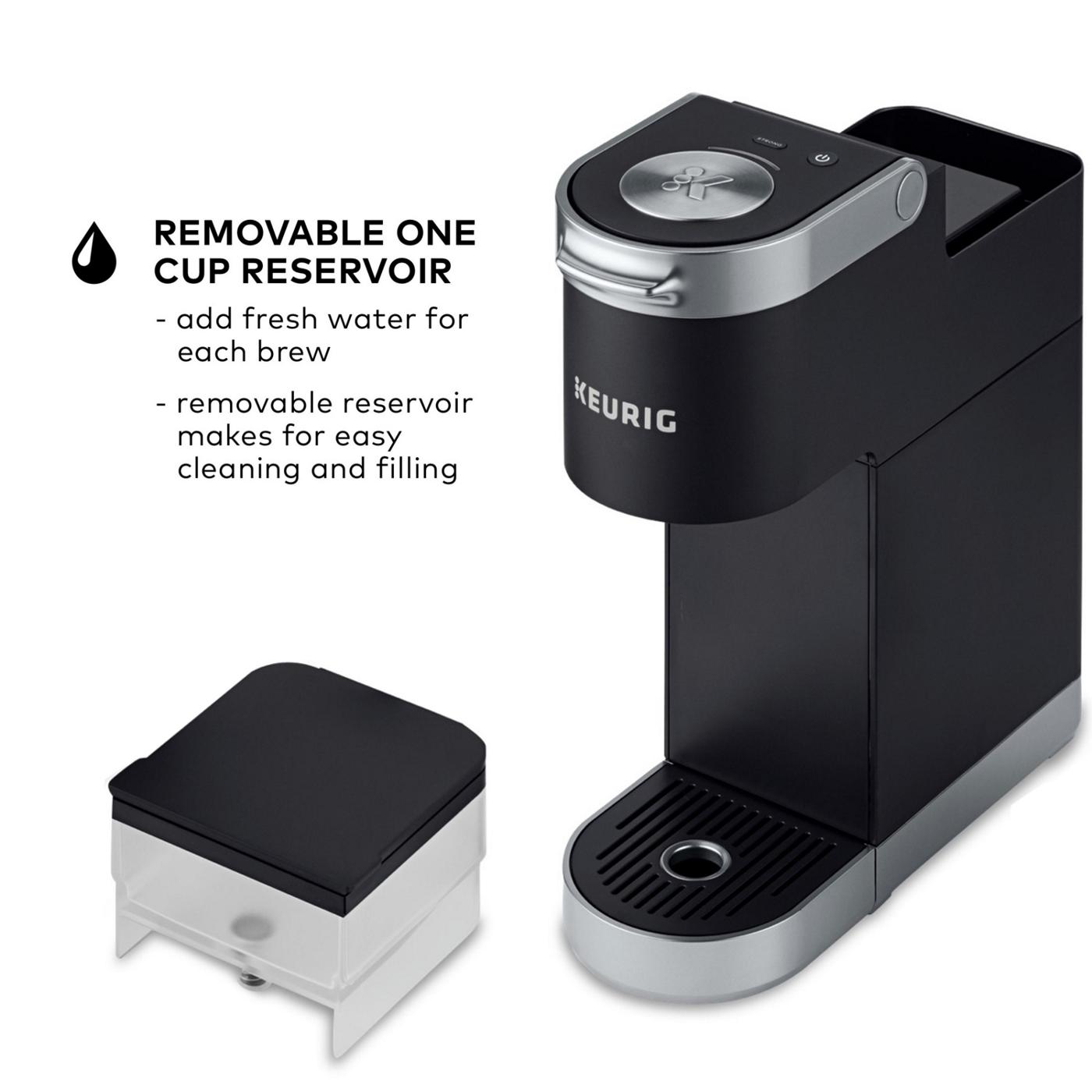 The Keurig K‑Mini Plus coffee maker is under 5" wide, sleek, and perfect for any space. Add water to the removable reservoir, insert a K‑Cup pod, and brew 6–12 oz of delicious coffee. Use Strong for a bolder cup. Features pod and cord storage for portability, plus stylish matte colors. *Cup not included