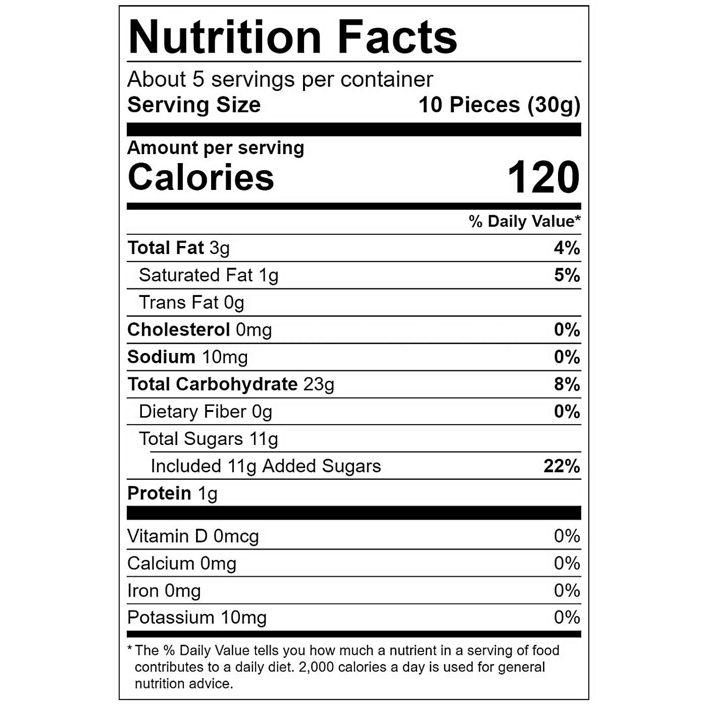 Serving Size10.00 pcs.- Amount Per ServingCalories120