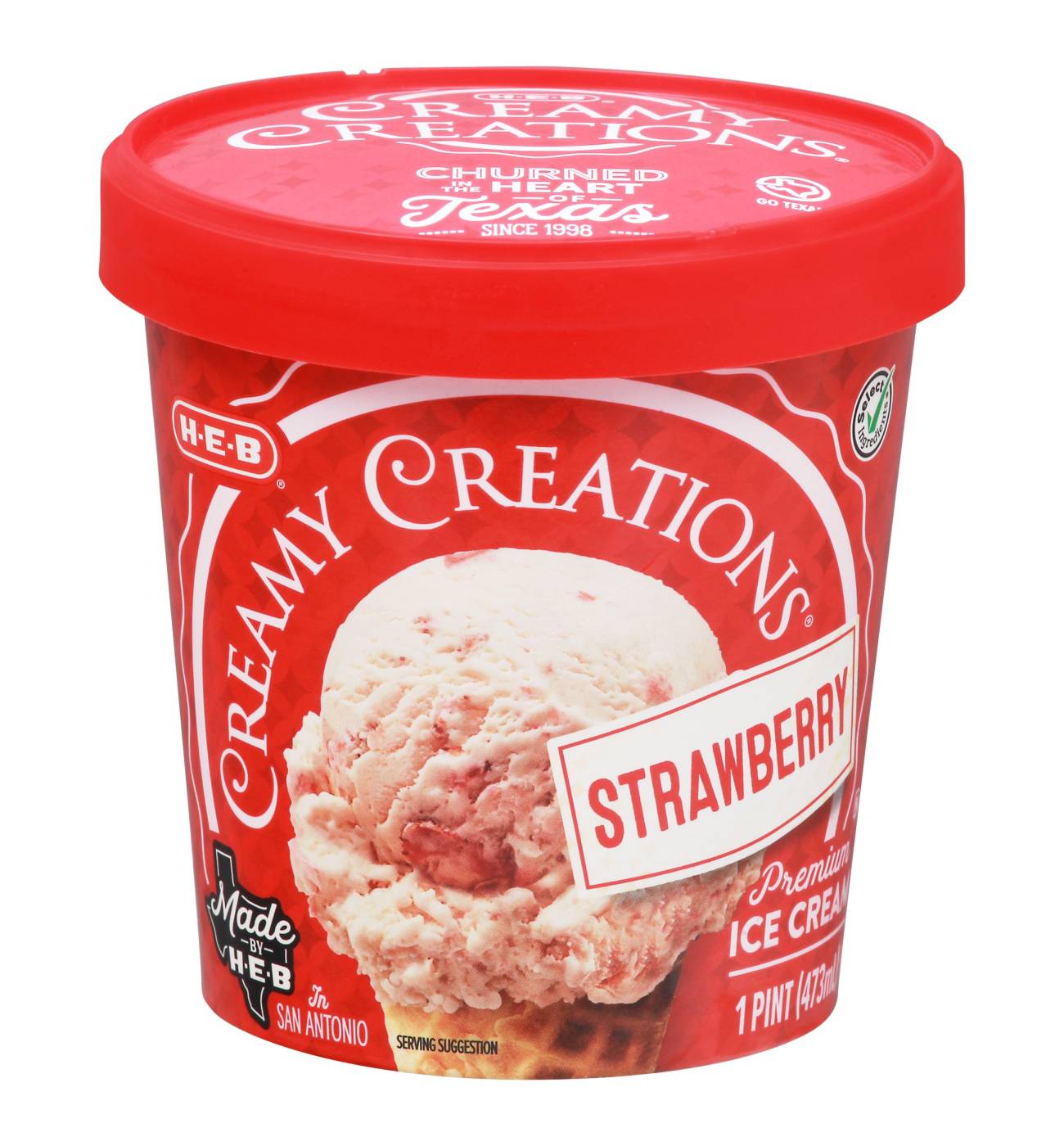 Churned in the heart of Texas, H-E-B Creamy Creations Strawberry Ice Cream is made with the freshest cream and ripe, juicy strawberries. Pick up a pint and indulge in the rich berry taste, knowing there’s no artificial flavors, no rBST and no high fructose corn syrup. Kosher.