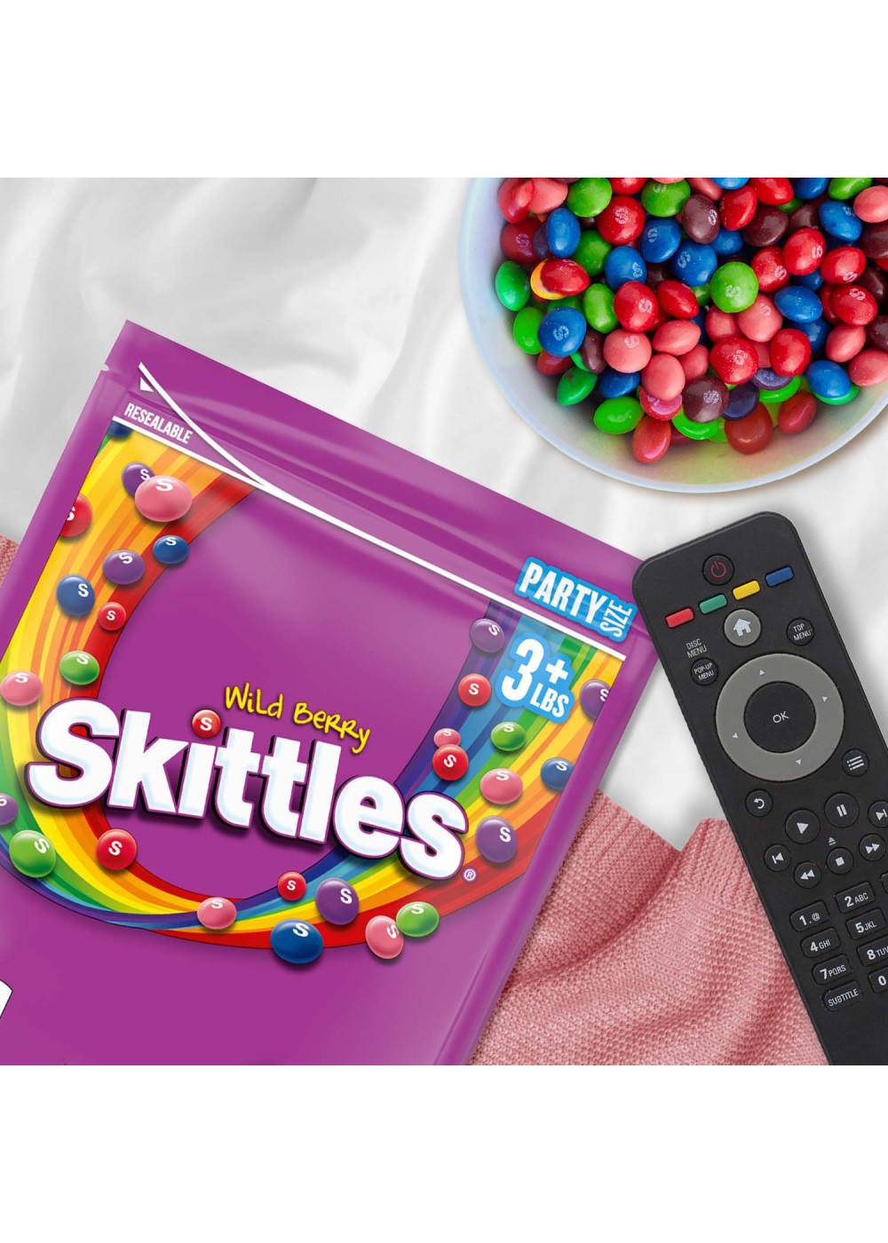 • Contains one (1) 50-ounce resealable party size bag of SKITTLES Wild Berry Candy