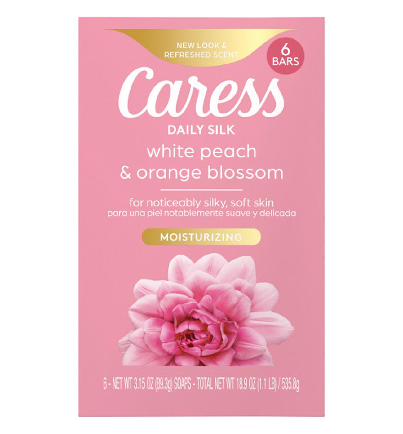 Experience beautifully silky, fragrant skin with this six-pack of Caress Daily Silk Beauty Bars. This moisturizing bar soap is infused with the scent of white peach and orange blossom, leaving your skin feeling soft and delicately scented. It is suitable for a daily cleansing routine for the whole family.• Creates a rich, fragrant lather that gently cleanses• Rinses cleanly away without leaving a heavy residue• Formulated to leave skin feeling silky smooth, not tight or dry