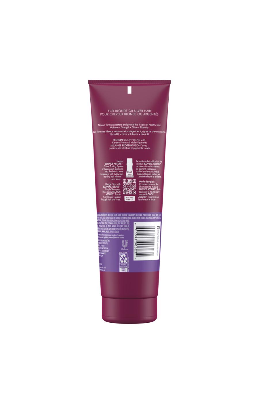 Lock in your perfect blonde with the Nexxus Blonde Assure Purple Conditioner with Keratin. This professional-quality conditioner is formulated with a ProteinFusion blend of keratin and violet pigments to nourish hair while continuing to tone. It strengthens and smooths each strand, protecting your color and leaving blonde hair feeling healthy, vibrant, and incredibly soft.• Continues the toning process initiated by a purple shampoo.• Deeply nourishes and detangles to improve manageability.• Deposits violet pigments to help maintain cool blonde shades.• Leaves hair feeling exceptionally soft, smooth, and resilient.