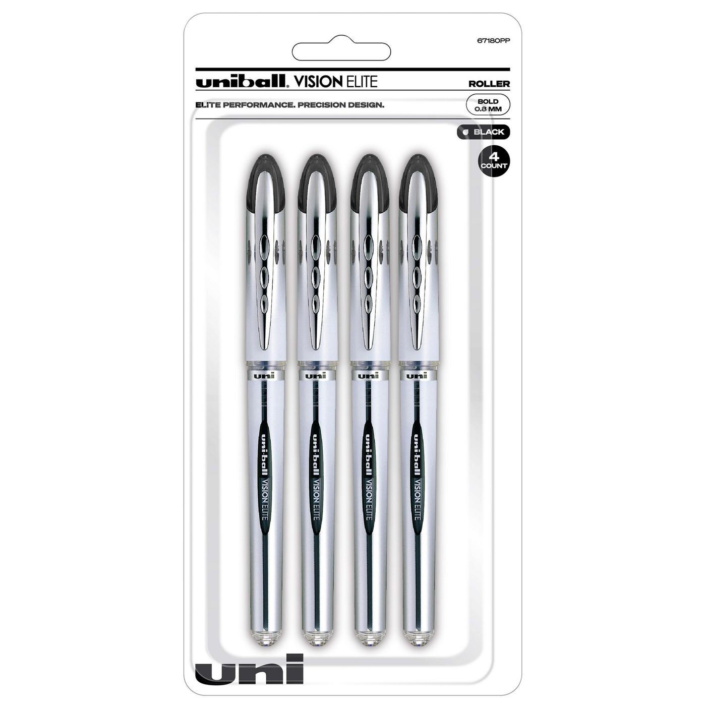 Create ideas as vividly as can be imagined with Vision Elite Rollerball Pens from uniball featuring a bend-resistant stainless steel 0.8mm bold tip and tungsten carbide rollerball. Capped roller pens deliver smooth, intense lines with unparalleled definition - useful for note taking, list making, signing checks and legal documents, and even uniquely embellishing creative writing projects. Express your signature style with the sleek, modern design and elite performance of uni-ball's Vision Elite Rollerball pen - no matter the altitude.