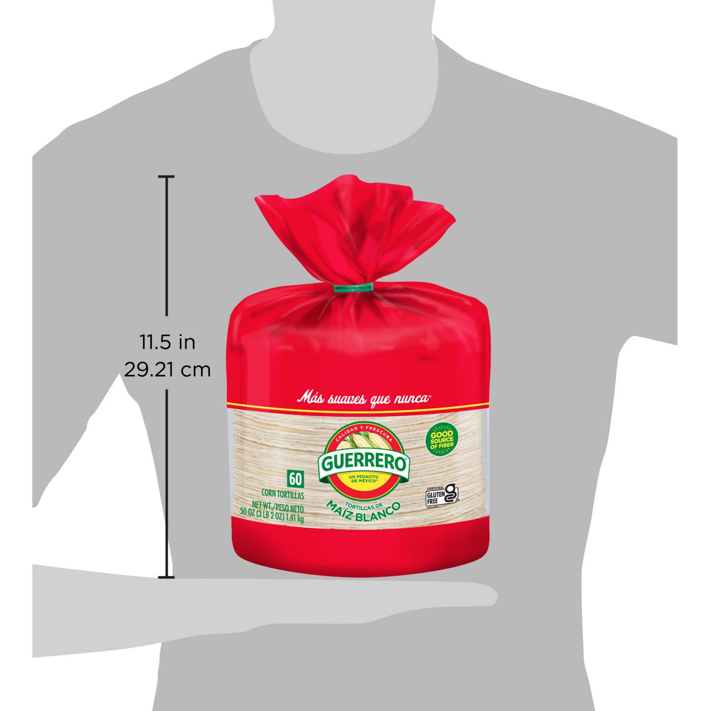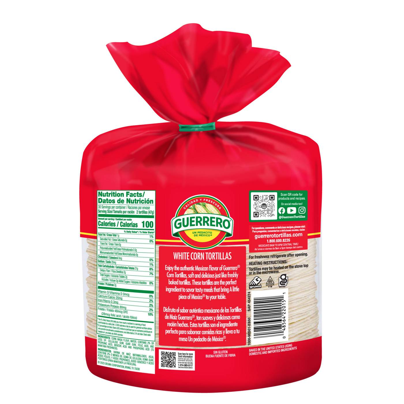 We use high quality ingredients and time-tested techniques to make sure every package of Guerrero White Corn Tortillas are an authentic addition to your family's dinner table. Our tortillas have a soft texture and traditional flavor that enhances any recipe, from Mexican dishes passed down through the generations to any modern twist you can come up with. Guerrero White Corn Tortillas are also gluten free and don't contain any lard, trans fat, or cholesterol. We recommend loading our corn tortillas with homemade carne guisada topped with avocado and cotija cheese. Includes one 60 ct package of Guerrero White Corn Tortillas.- One 60-count package of Guerrero White Corn Tortillas- Feel good about your tortilla of choice as our corn tortillas are certified gluten-free and contain no cholesterol- Each tortilla is made to have a soft texture and a delicious authentic taste- These tortillas serve as a good source of fiber and each serving is trans fat free- Fill our versatile tortillas with the protein or veggies of your choice and make your meal or snack one to remember