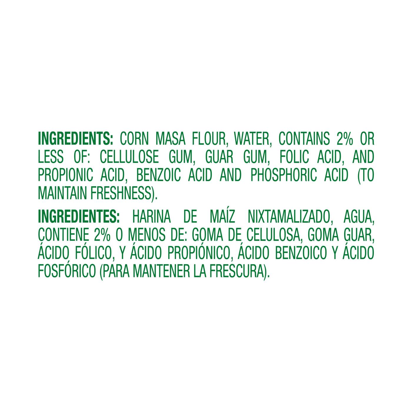 Ground Corn Treated with Lime, Water, Cellulose Gum, Propionic Acid (to Preserve Freshness), Benzoic Acid (to Preserve Freshness), Phosphoric Acid (Preservative), Dextrose, Guar Gum, Amylase.